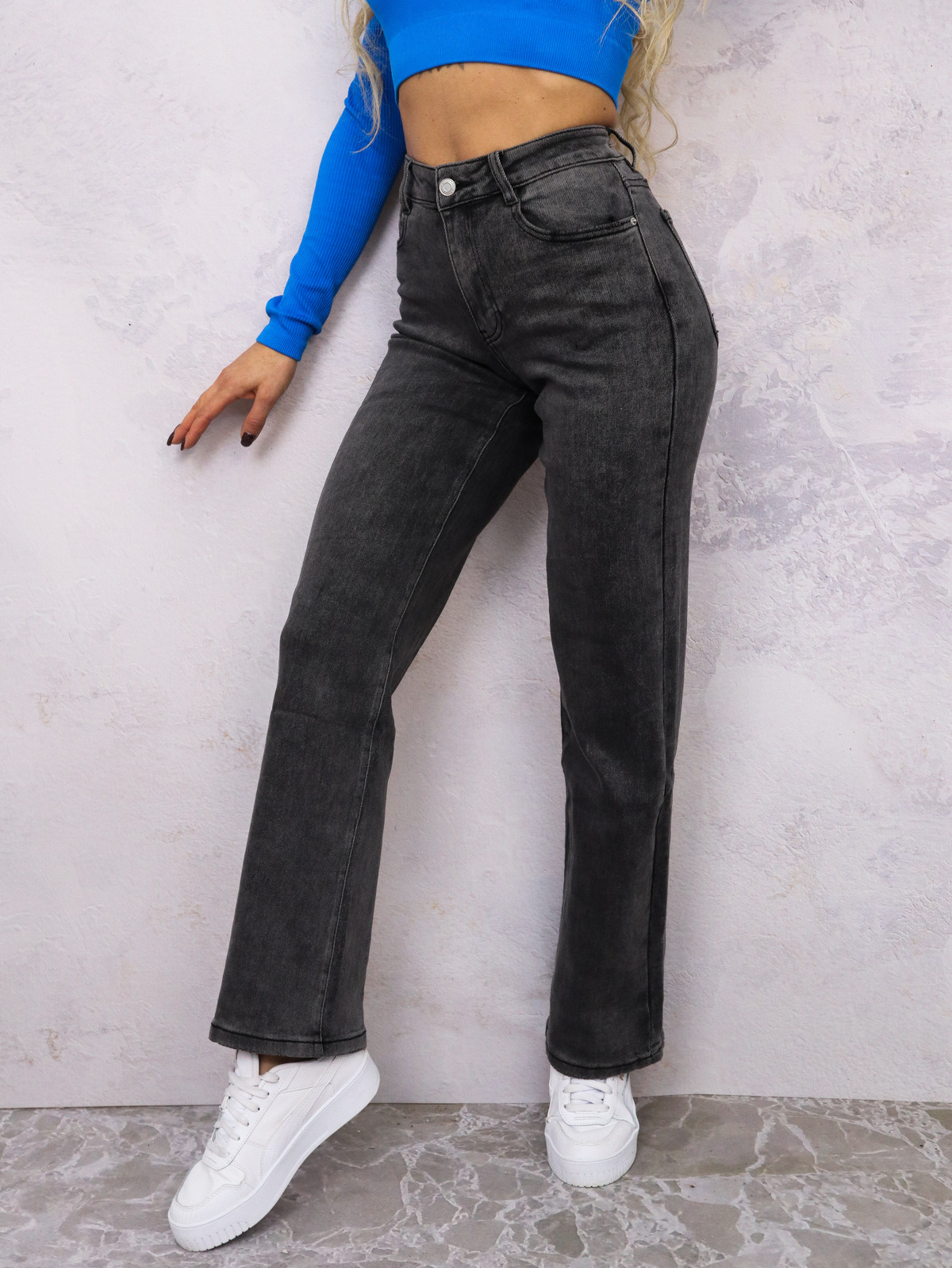 SPODNIE JEANSOWE Z SZEROKIMI NOGAWKAMI- CZARNE