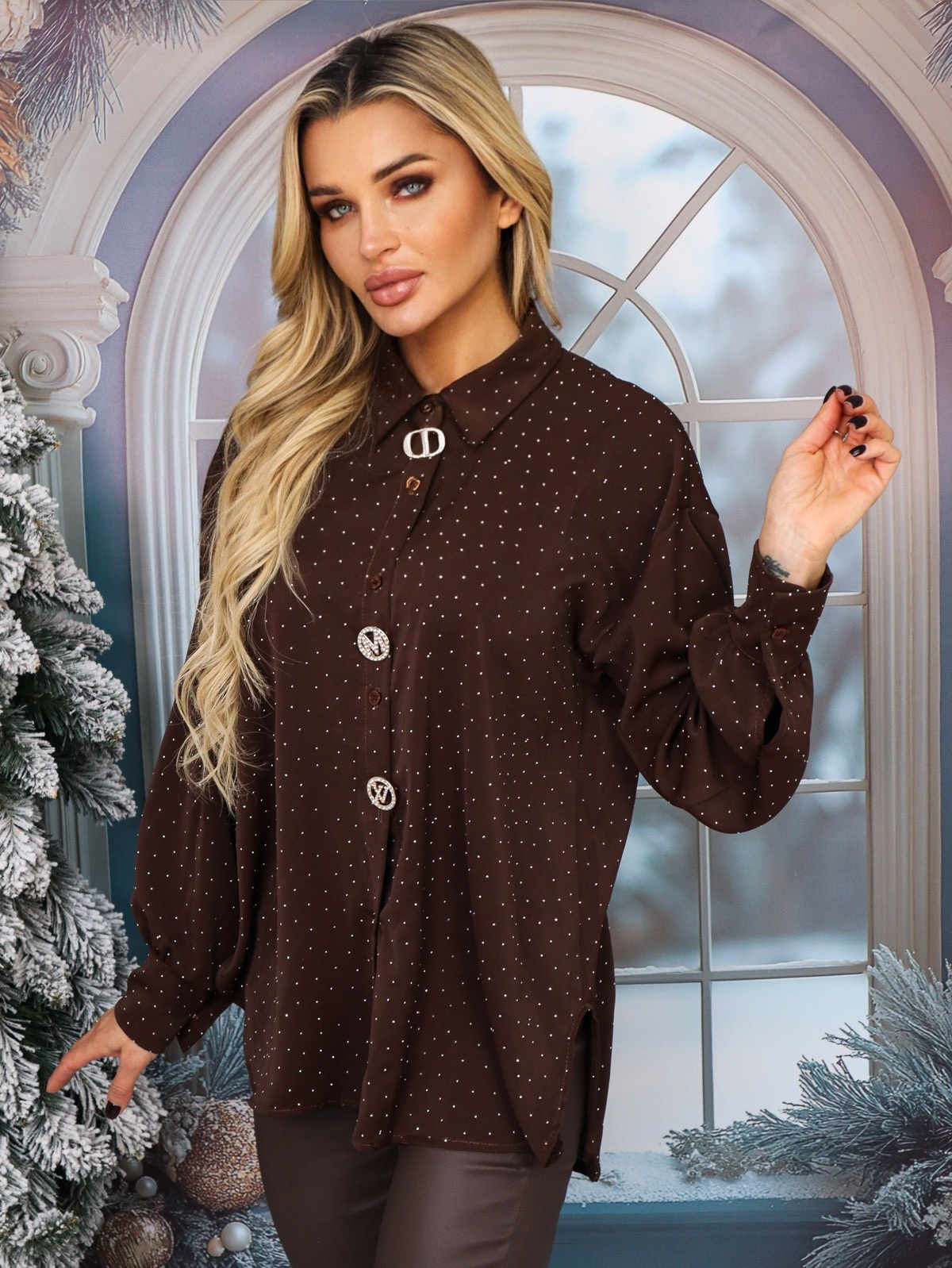KOSZULA W CYRKONIE Z ODPINANYMI BROSZKAMI- CIEMNY BRĄZ