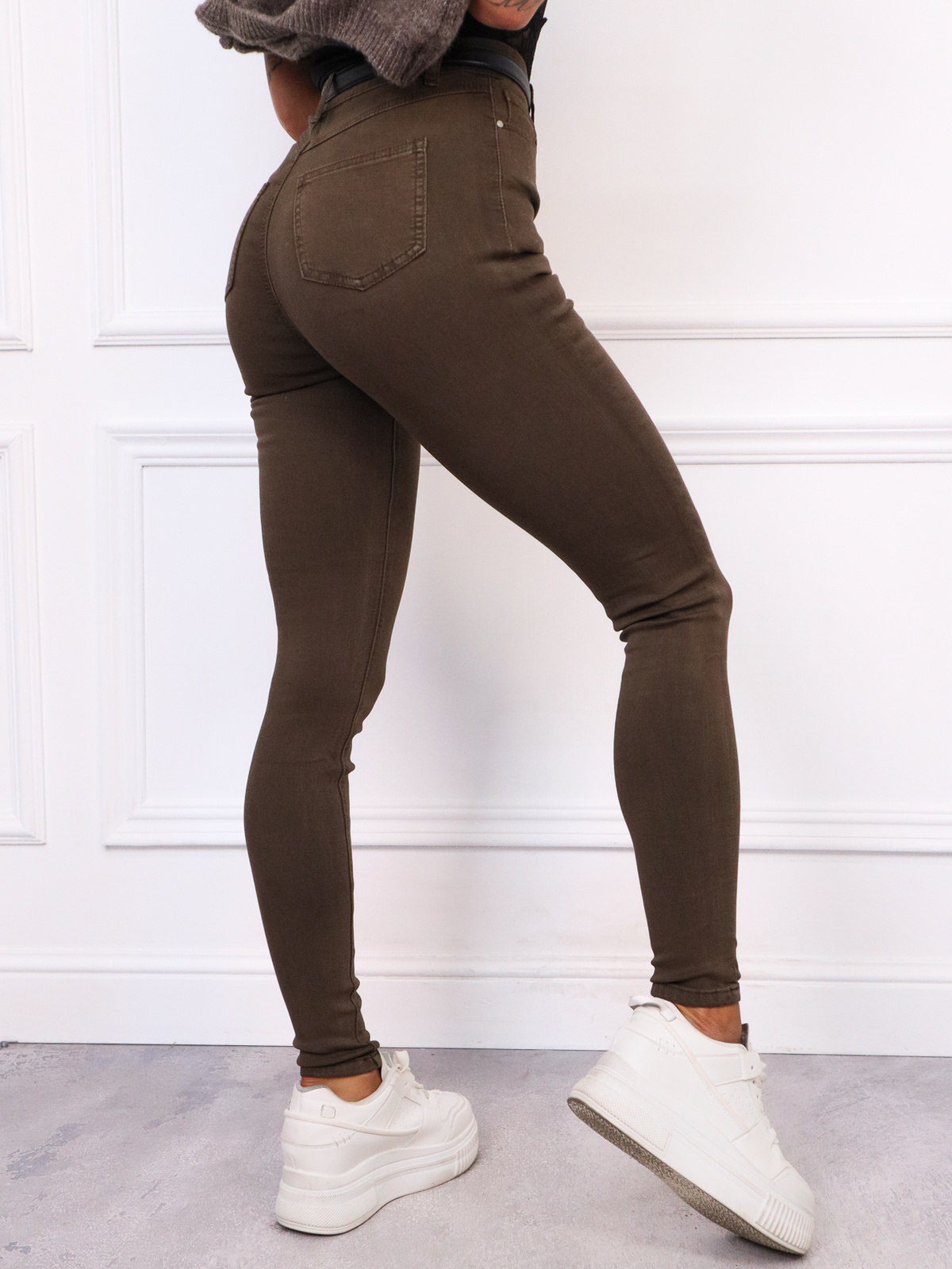 Spodnie wykonane z elastycznego materiału. Bardzo wysoki stan, rozporek na suwak i guzik. Obcisłe nogawki. Spodnie z funkcją stretchu, który trzyma i modeluje talię, uda i pośladki oraz zachowuje kształt spodni.