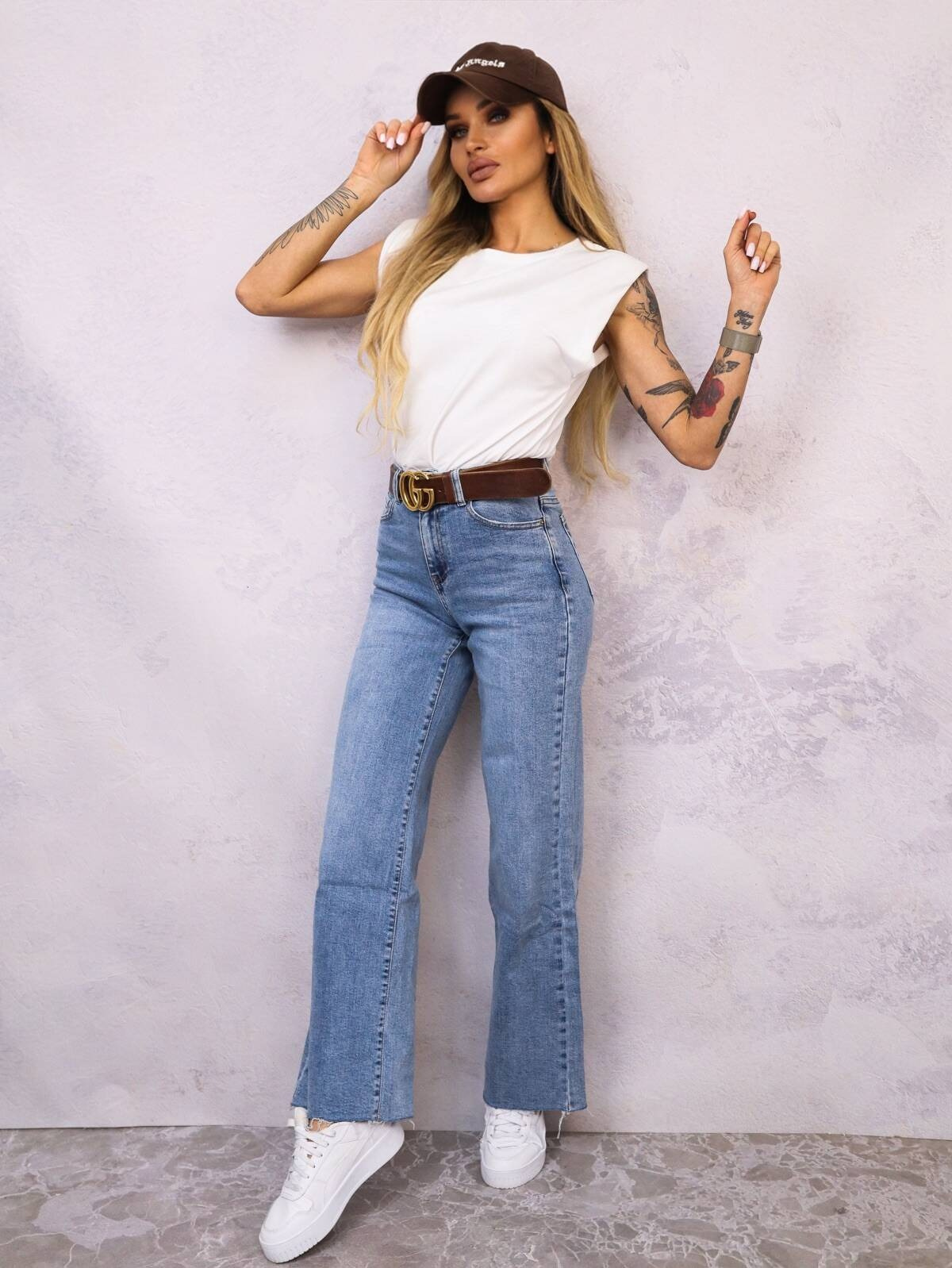 SPODNIE JEANSOWE Z SUROWYMI,SZEROKIMI NOGAWKAMI I WYSOKIM STANEM