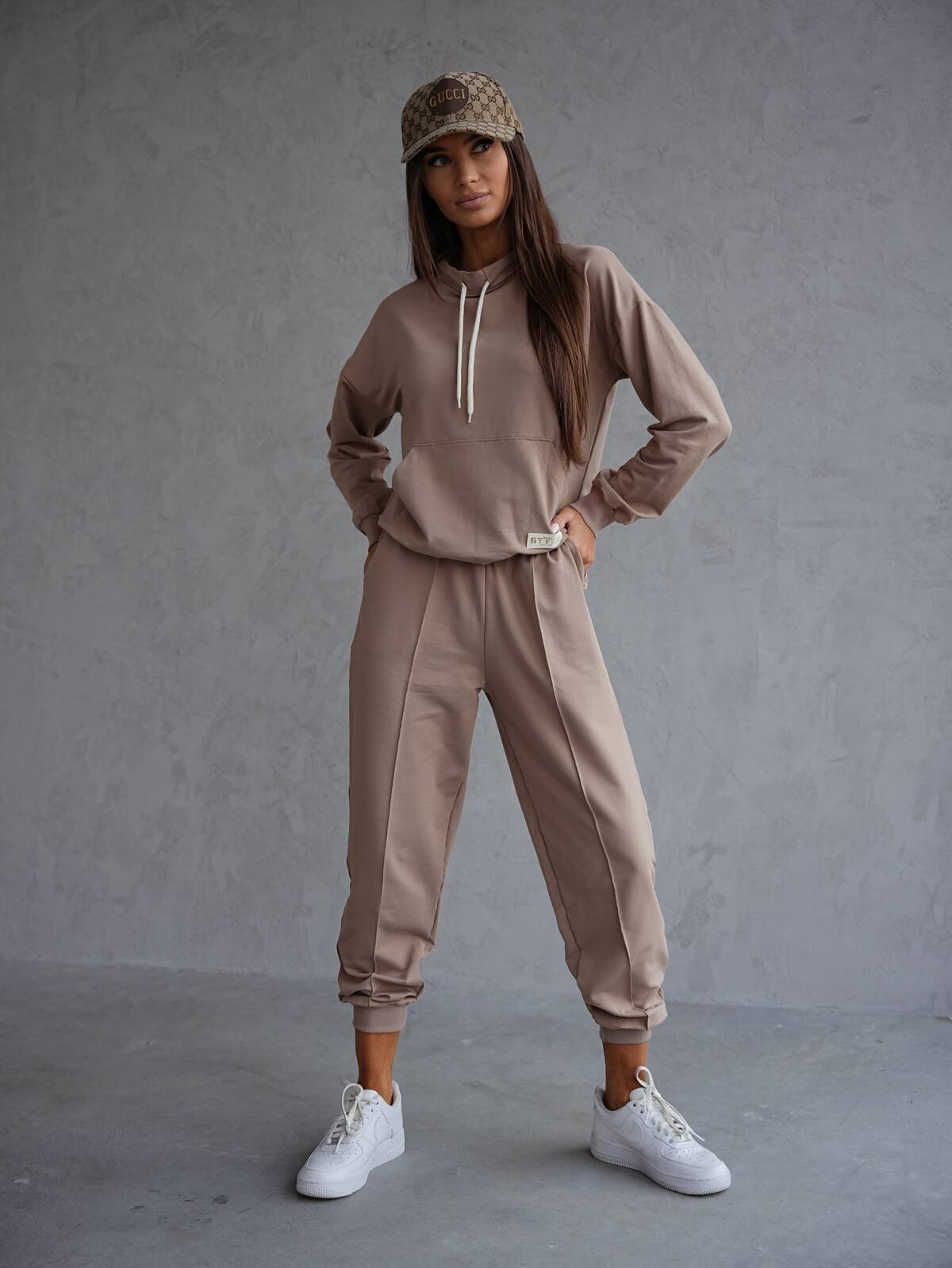 KOMPLET BAWEŁNIANY BLUZA Z SZNURKAMI+SPODNIE- BRĄZOWY