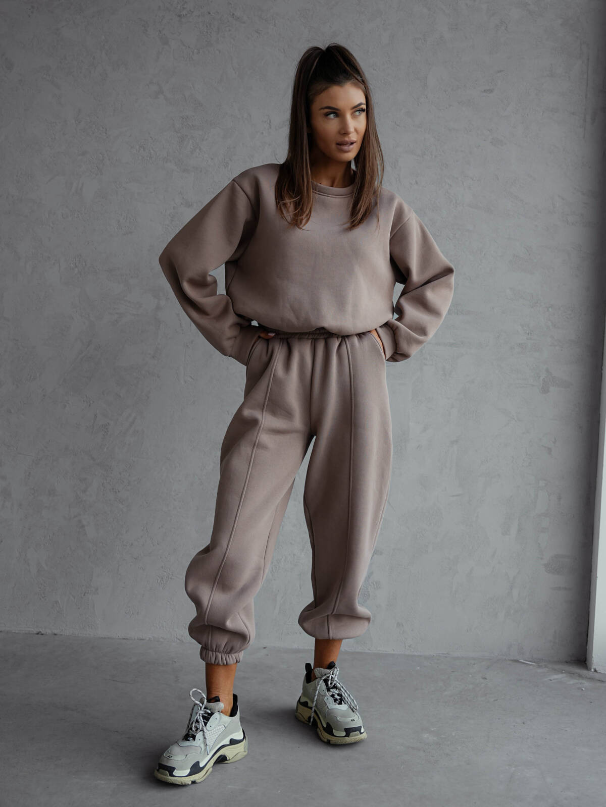 KOMPLET DRESOWY BLUZA+ SPODNIE- BRĄZOWY