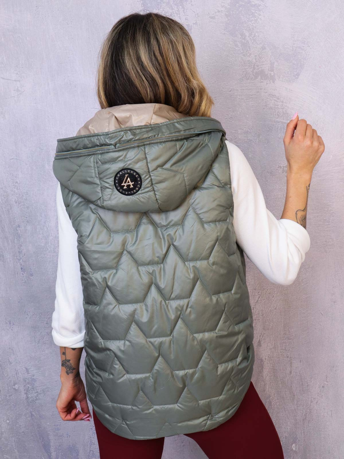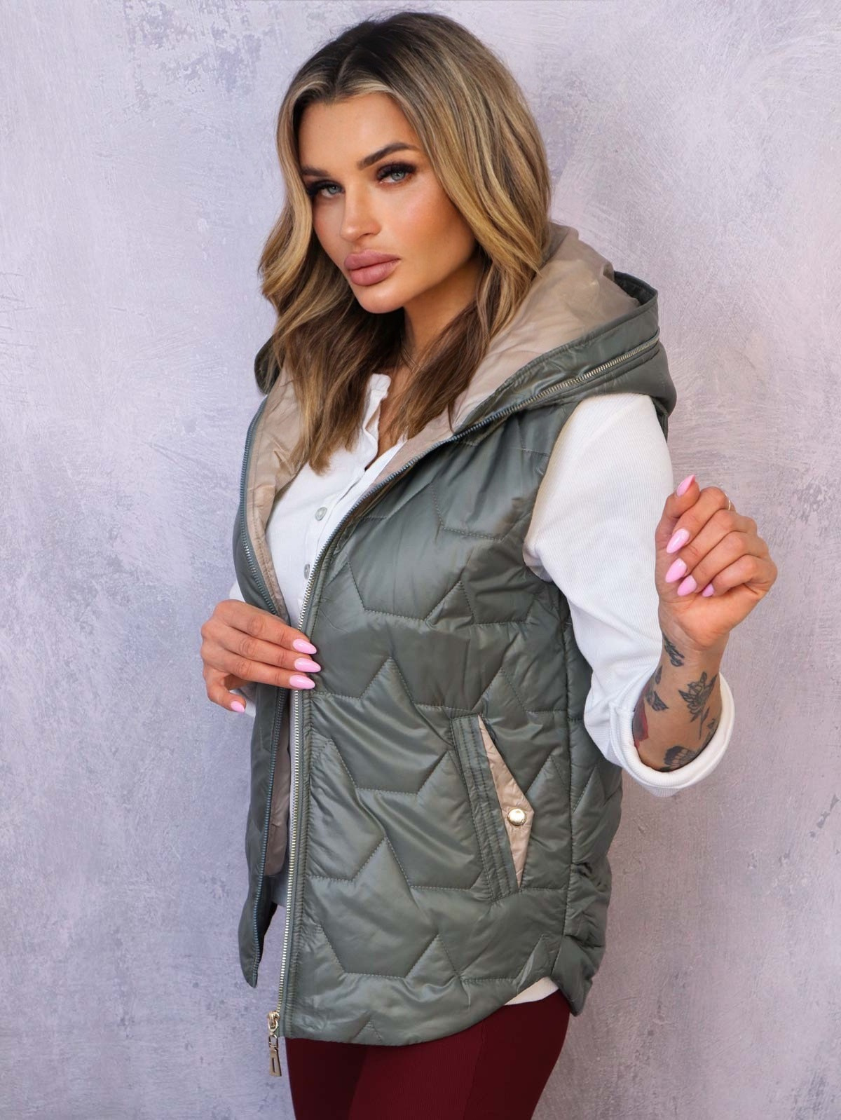 KAMIZELKA ASYMETRYCZNA Z KONTRASTOWYM KAPTUREM- ZIELONA