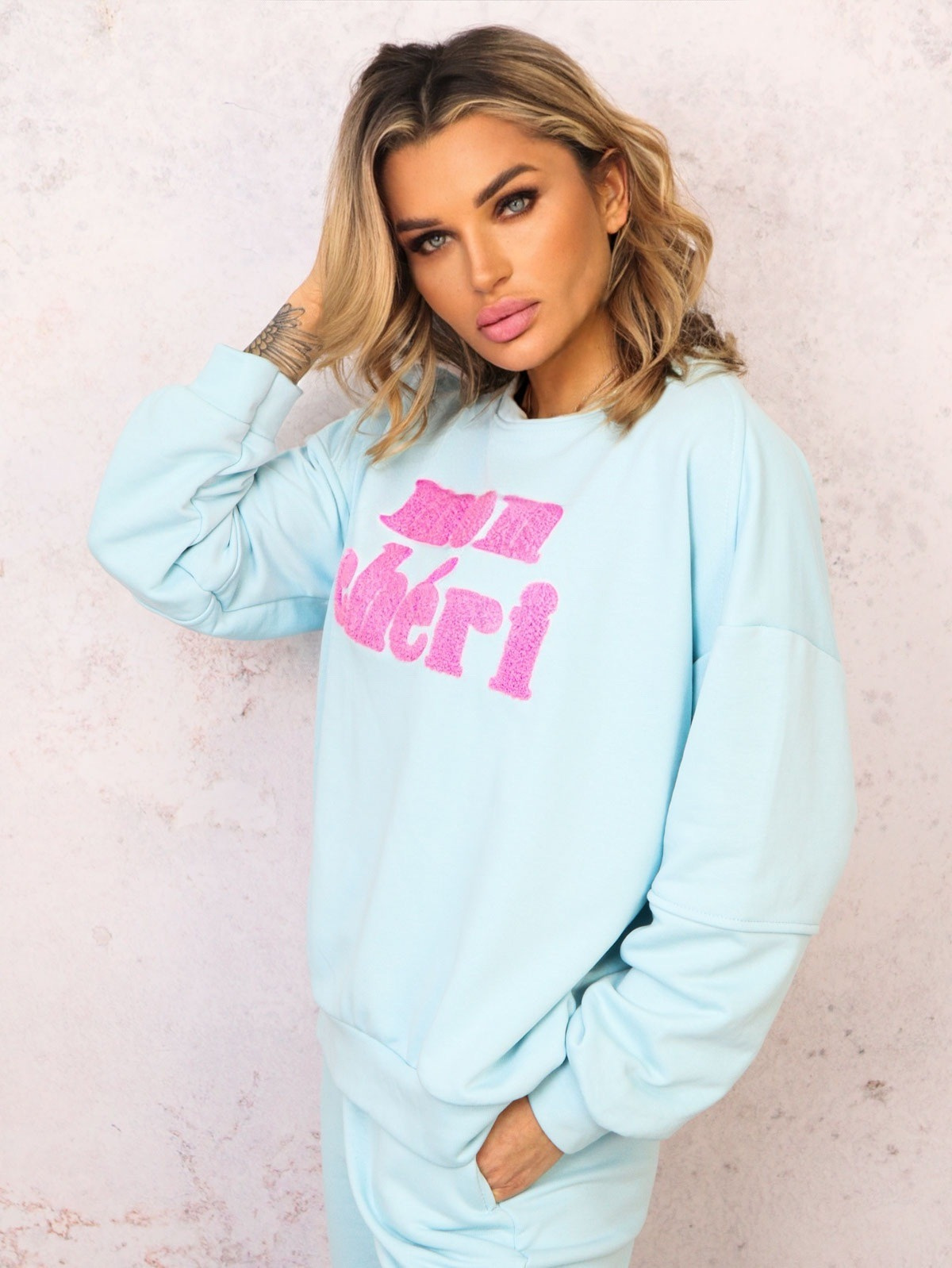 KOMPLET DRESOWY BLUZA Z NAPISEM+ SPODNIE- NIEBIESKI