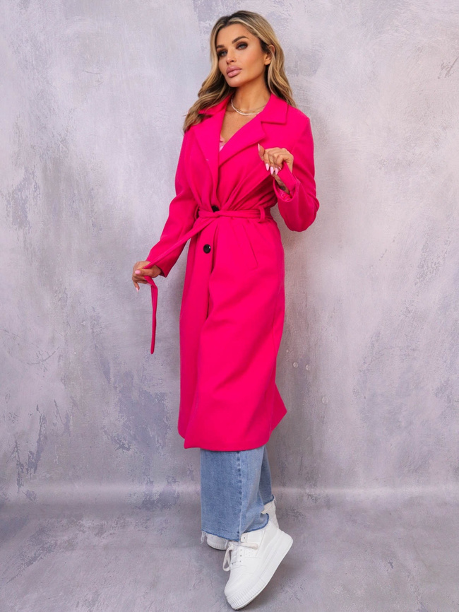 DŁUGI WIĄZANY PŁASZCZ- FUKSJA
