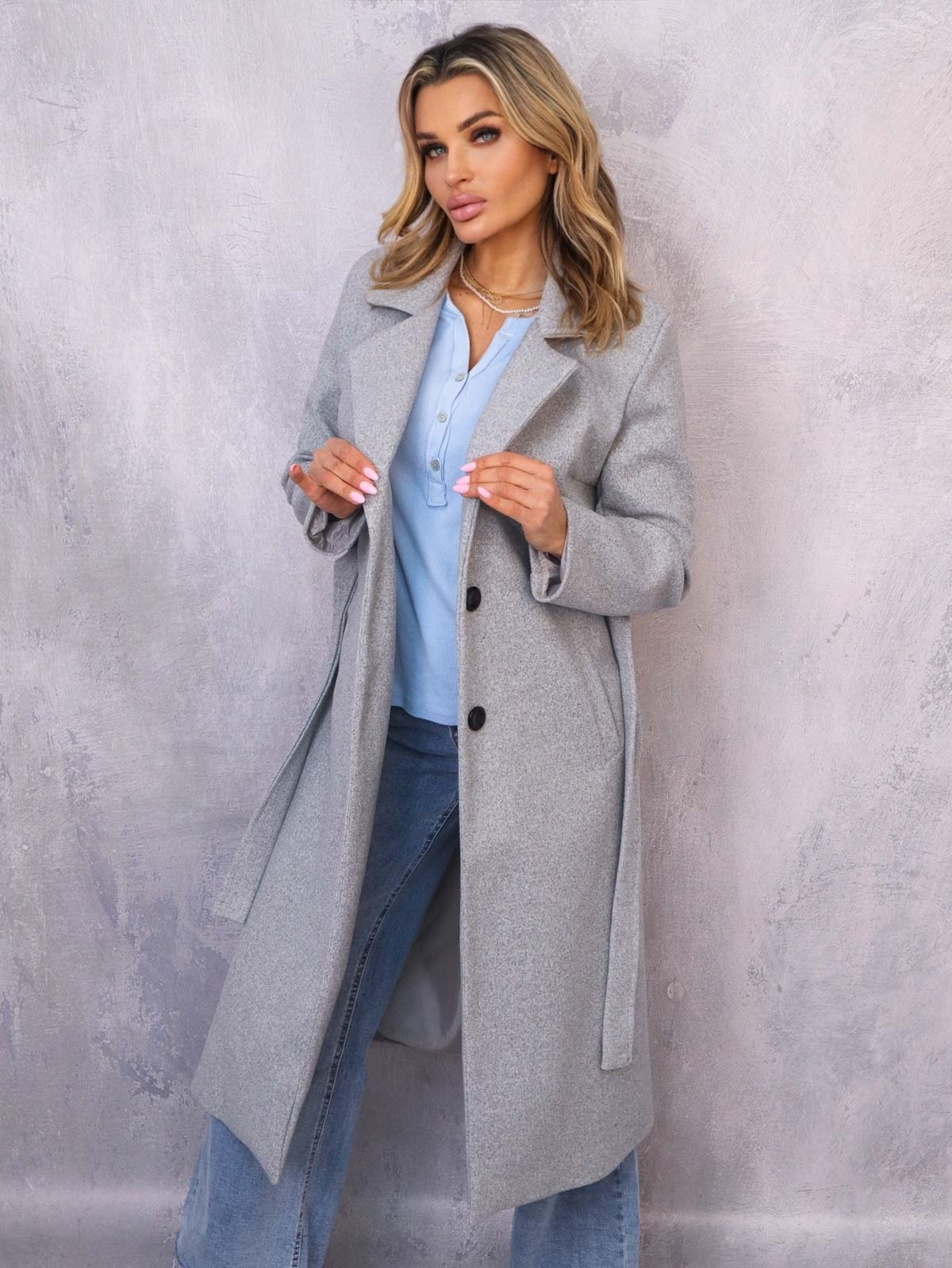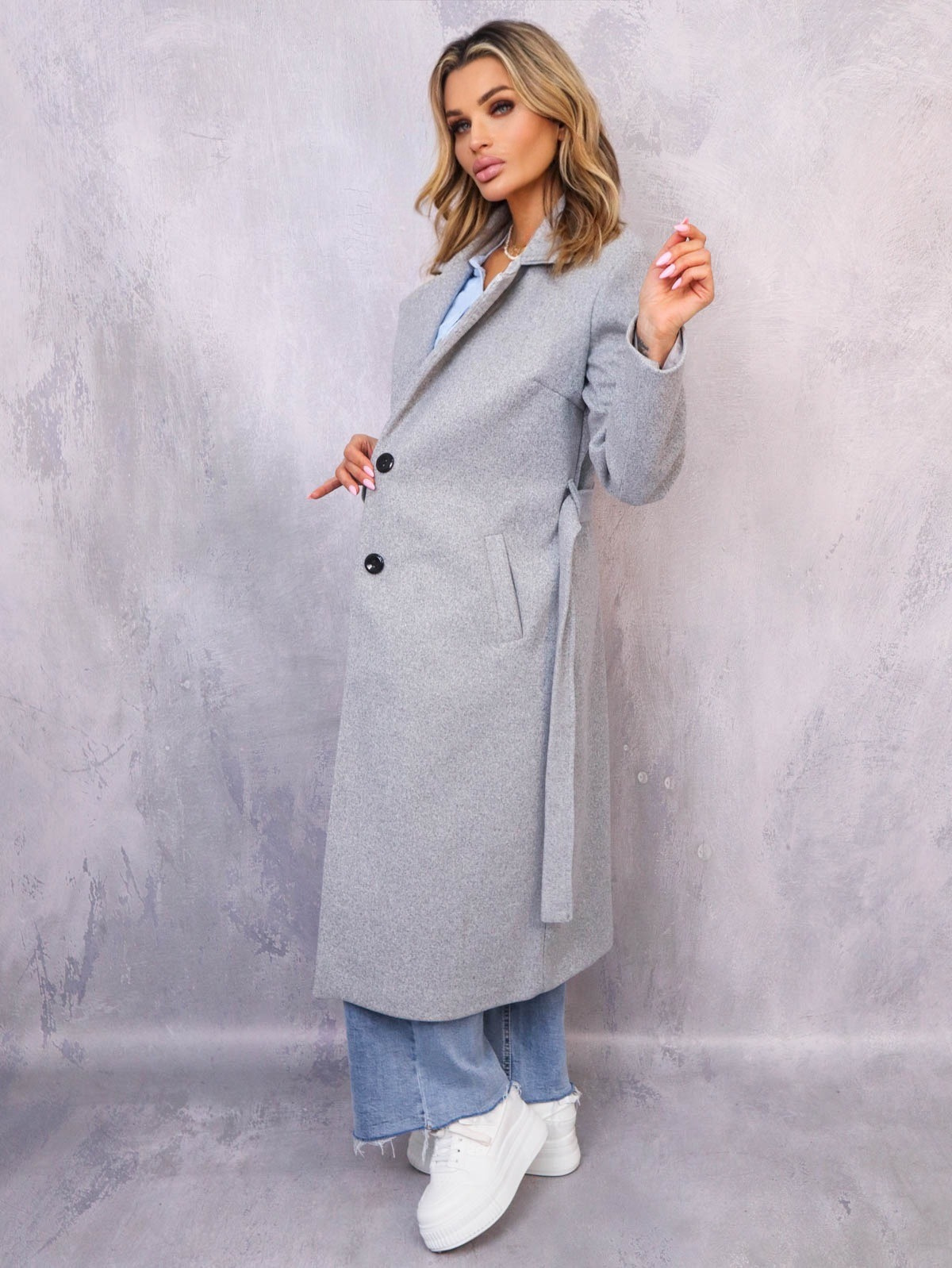 DŁUGI WIĄZANY PŁASZCZ- SZARY