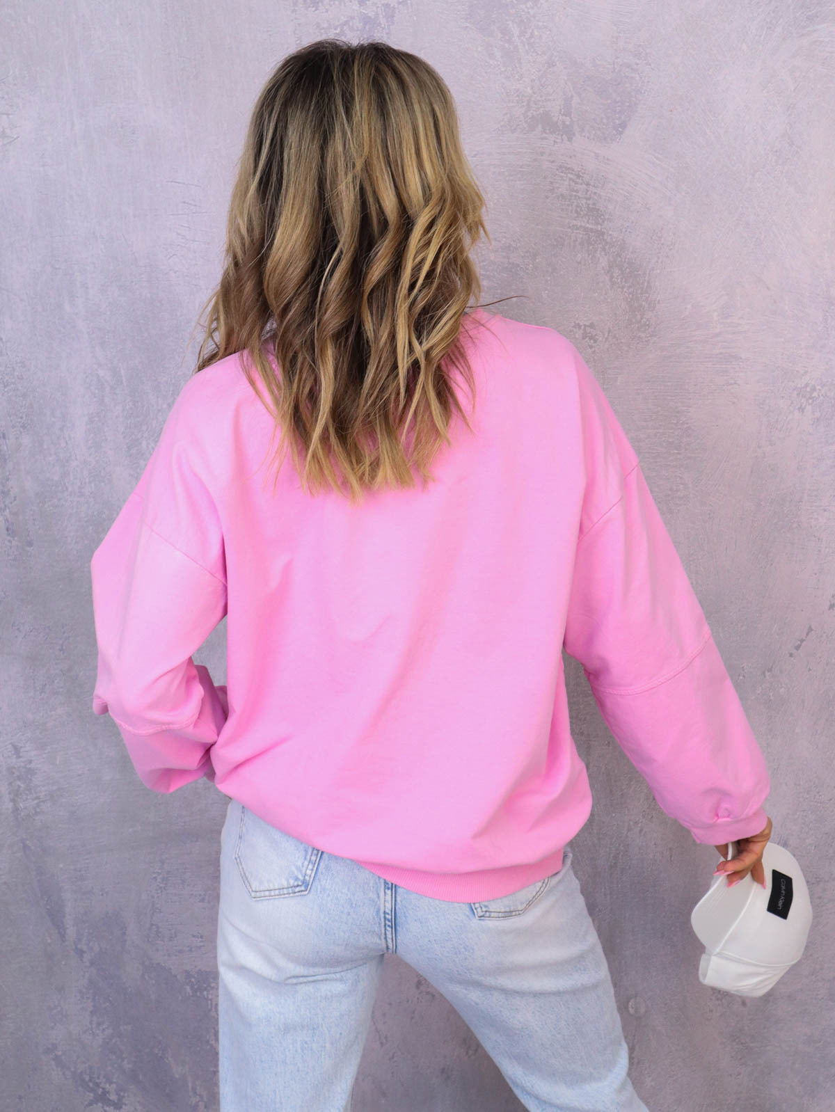 ASYMETRYCZNA BLUZA OVERSIZE Z PRZESZYCIAMI NA RĘKAWACH- RÓŻOWA