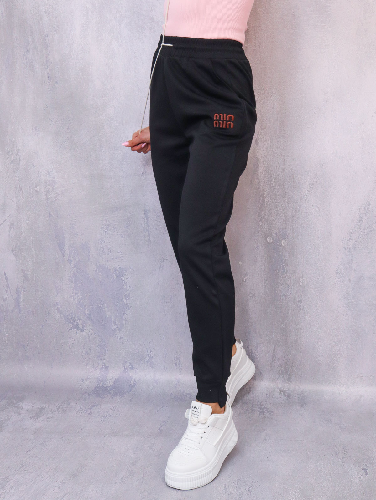 SPODNIE DRESOWE Z HAFTOWANYM NAPISEM MIN MIN- CZARNE