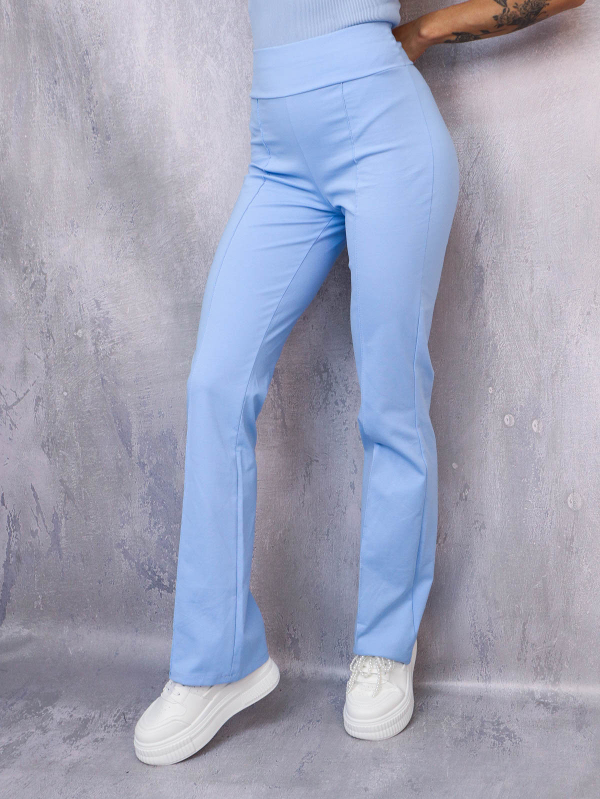 SPODNIE DZWONY FLARE Z PRZESZYCIEM- NIEBIESKIE