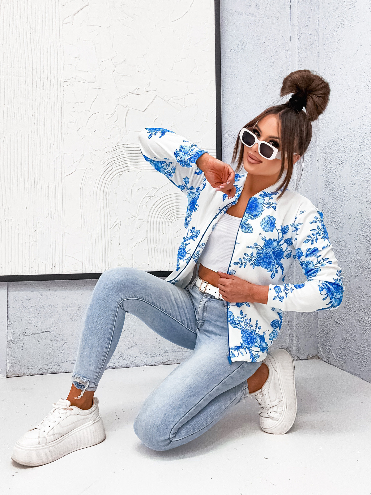 BLUZA WELUROWA W KWIECISTY WZÓR ZAPINANA NA ZAMEK- ECRU