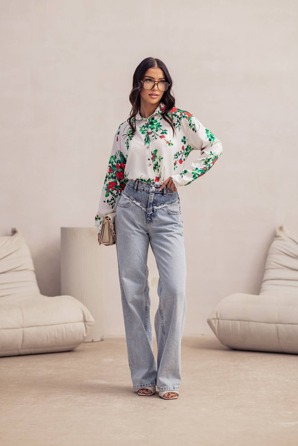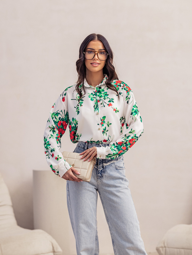 KOSZULA ZAPINANA NA GUZIKI W KWIECISTY WZÓR- BIAŁA