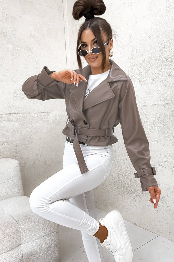 KURTKA KRÓTKI TRENCZ Z IMITACJI SKÓRY- FANGO