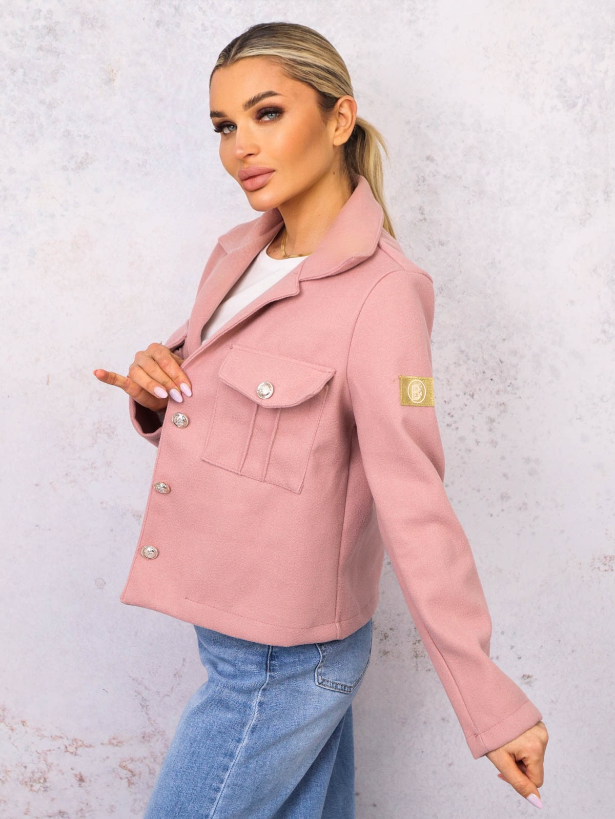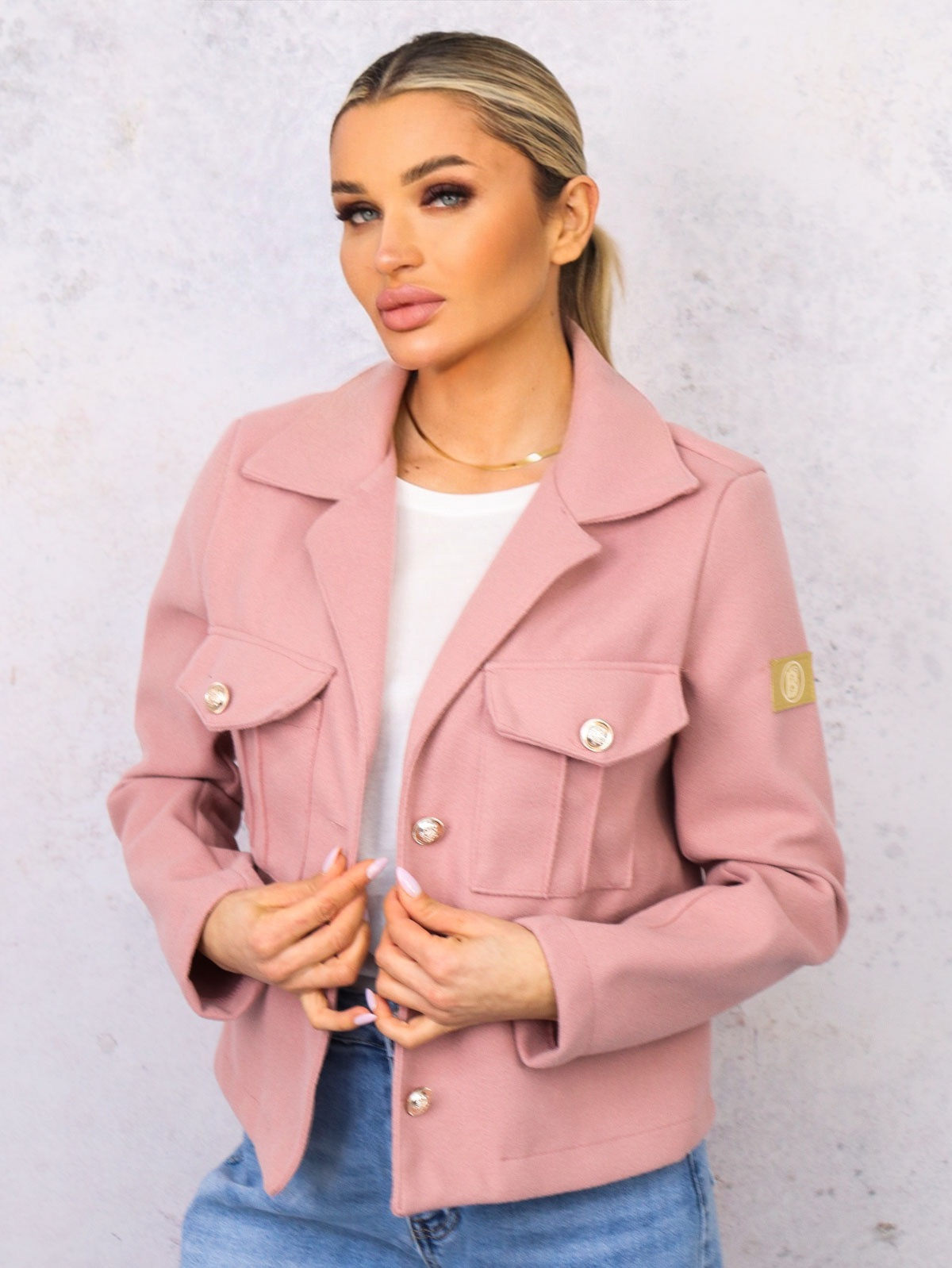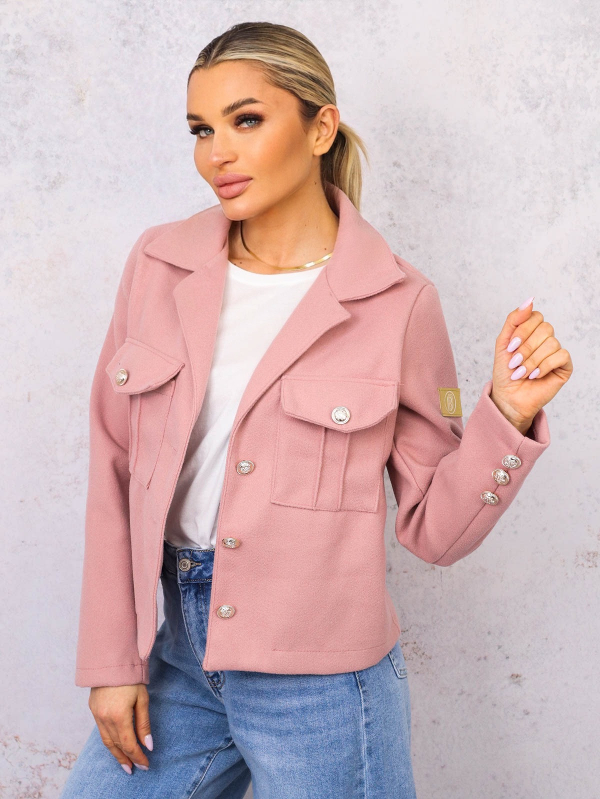 KURTKA Z KOŁNIERZYKIEM ZAPINANA NA GUZIKI- RÓŻOWE