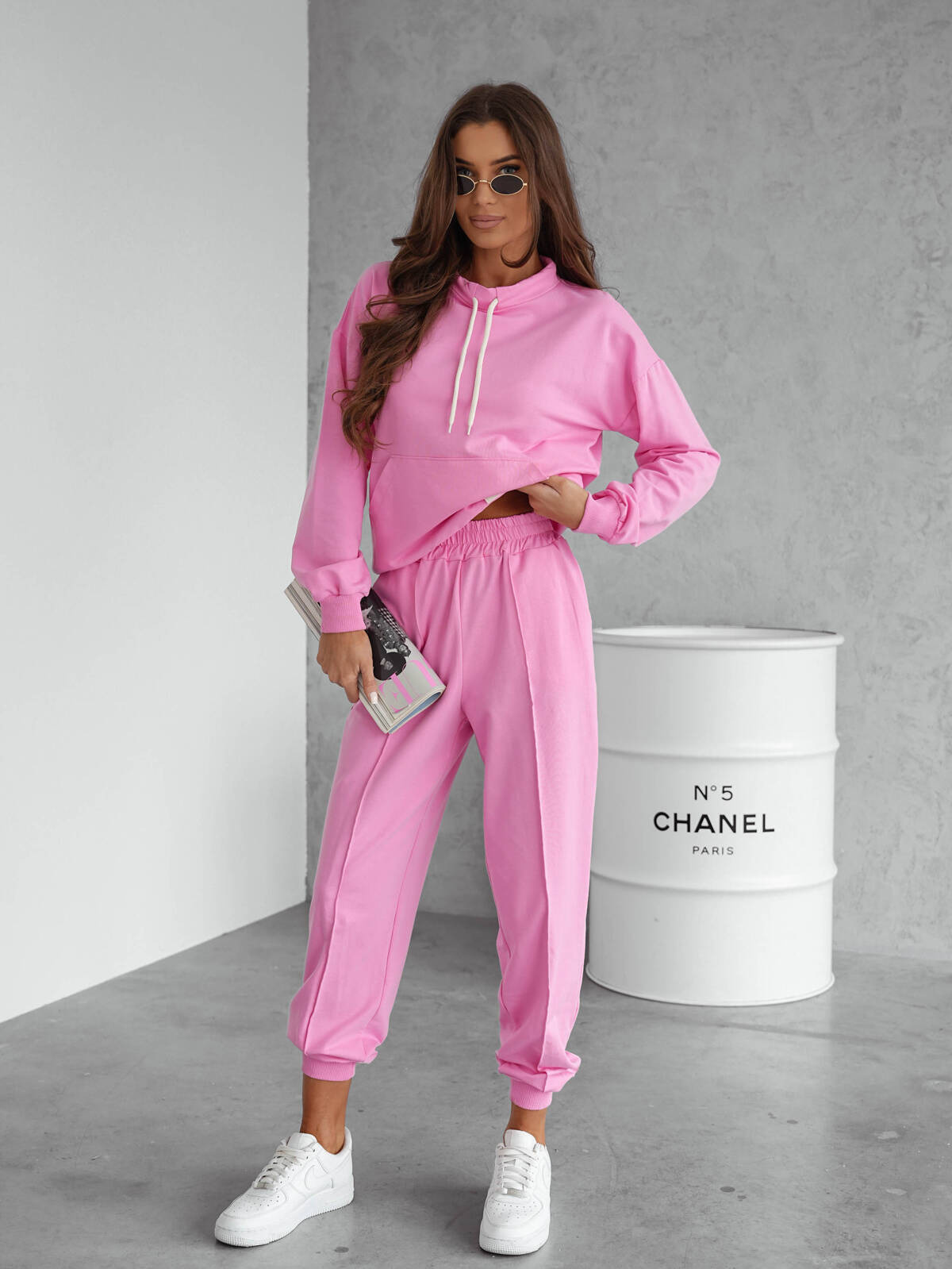 KOMPLET BAWEŁNIANY BLUZA Z SZNURKAMI+SPODNIE- RÓŻOWY