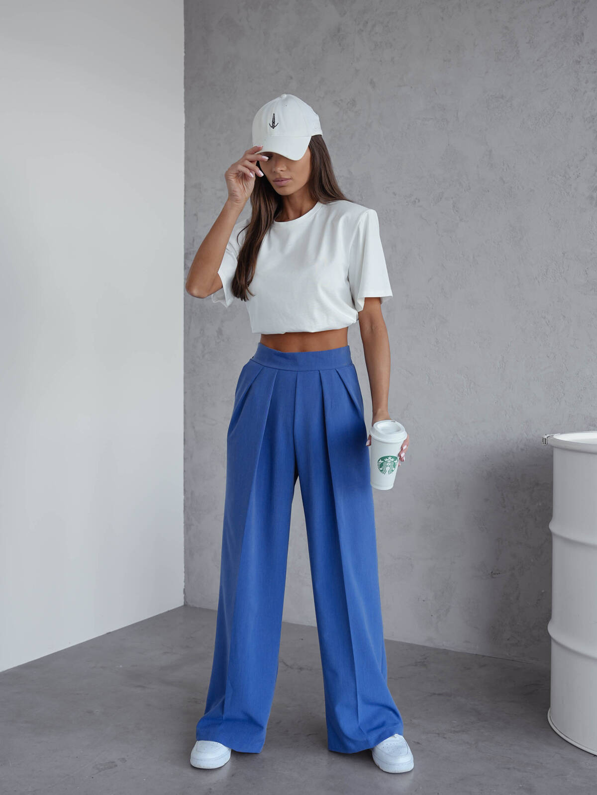 SPODNIE ELEGANCKIE MATERIAŁOWE Z KANTEM- GRANATOWE