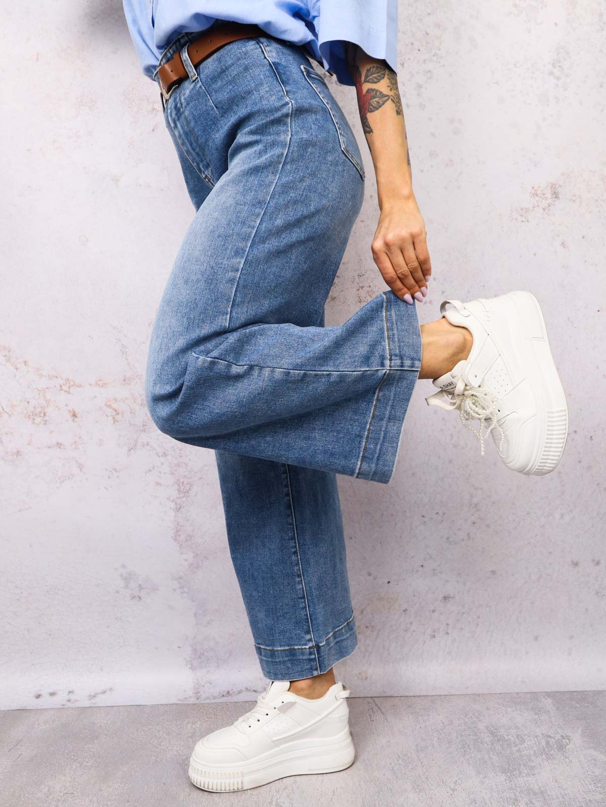 JEANSOWE SPODNIE Z SZEROKIMI NOGAWKAMI+ PASEK