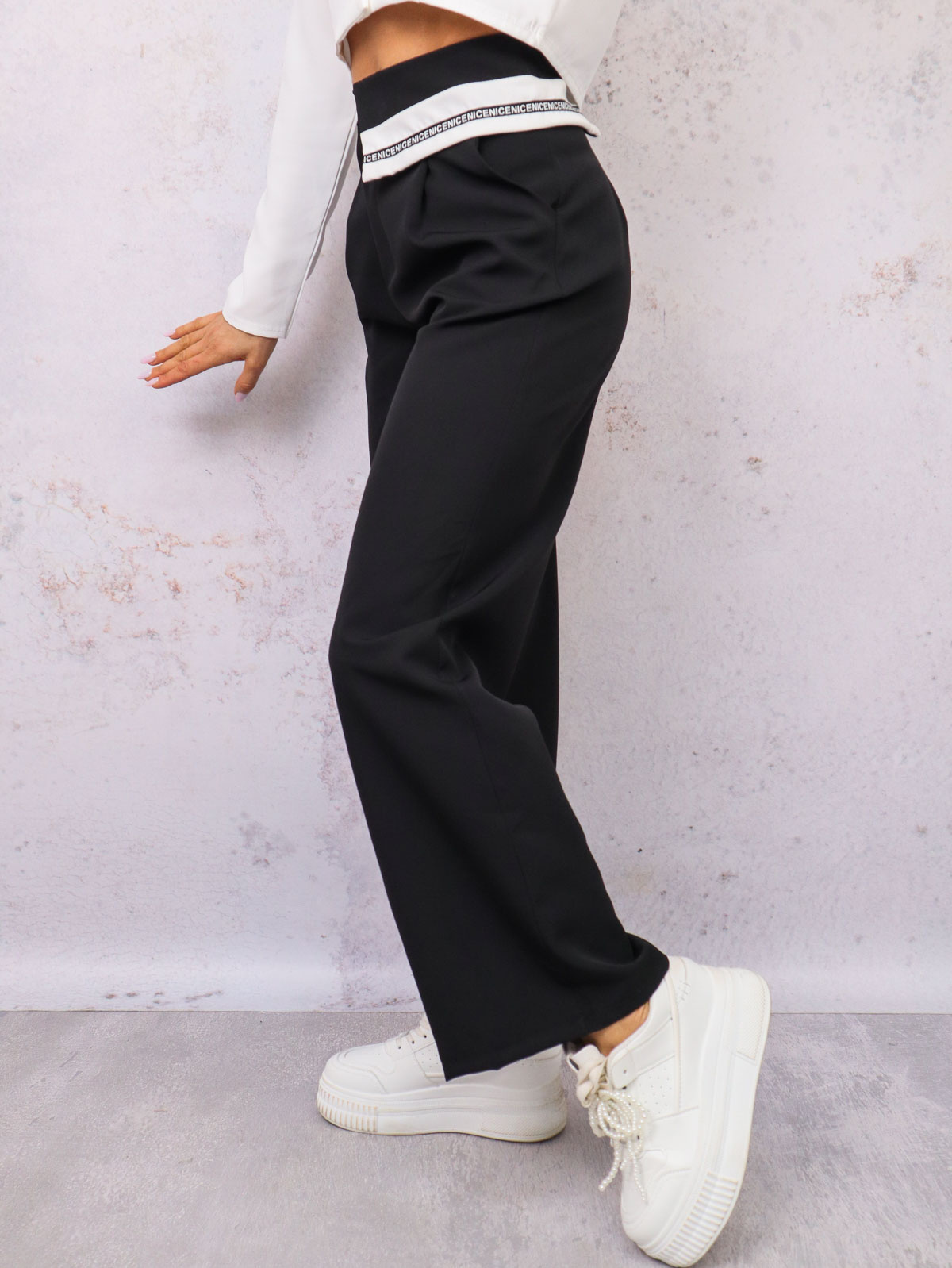 SPODNIE MATERIAŁOWE ELEGANCKIE Z MANKIETEM W PASIE- CZARNE