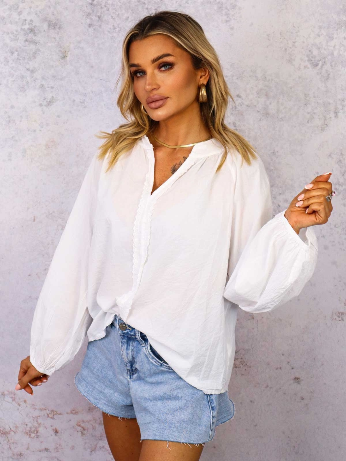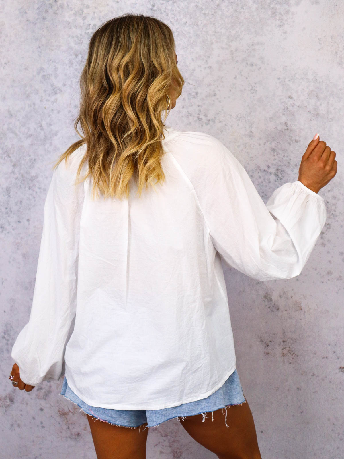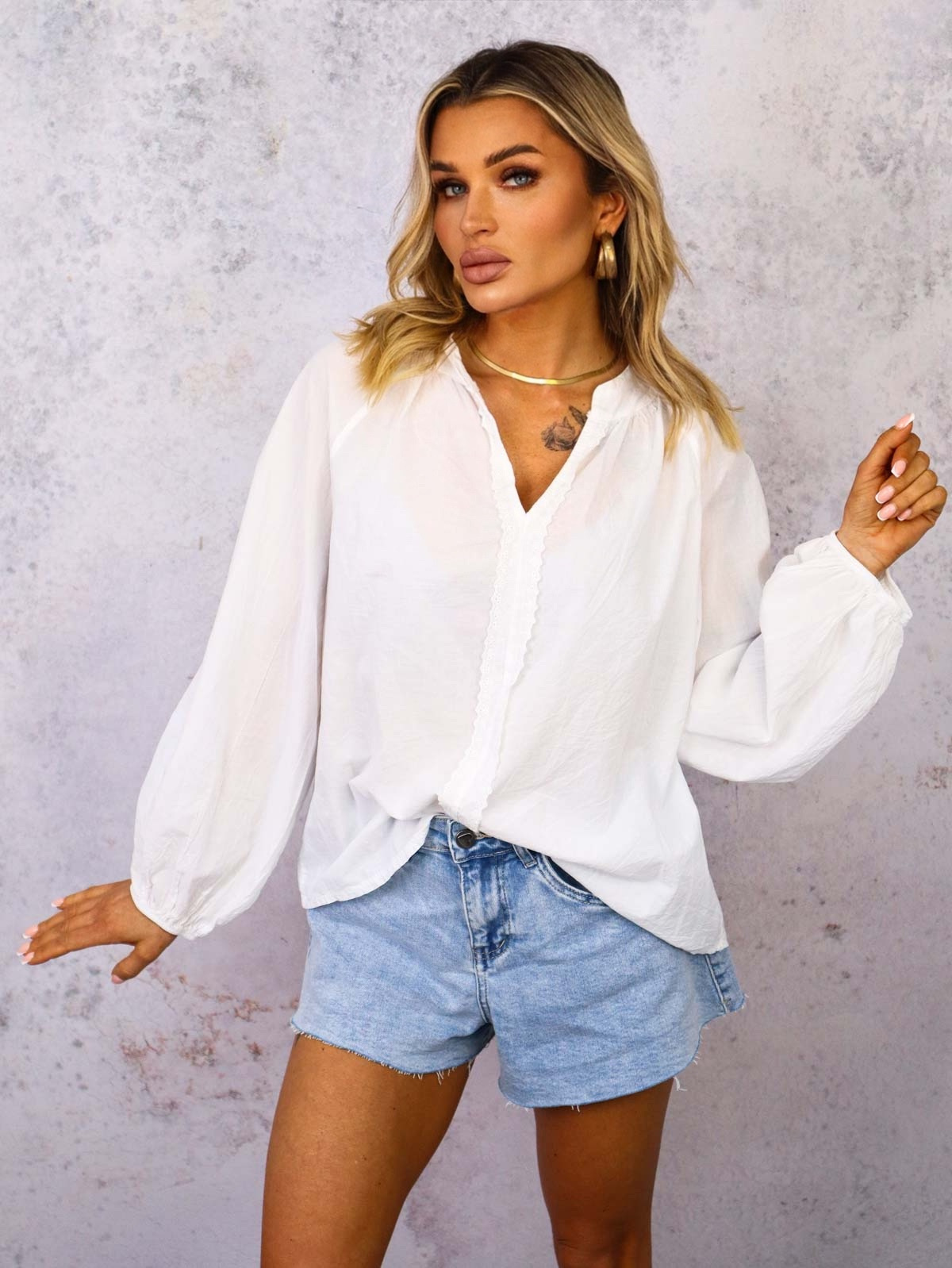 BLUZKA KOSZULOWA Z OZDOBNYM HAFTEM- BIAŁA