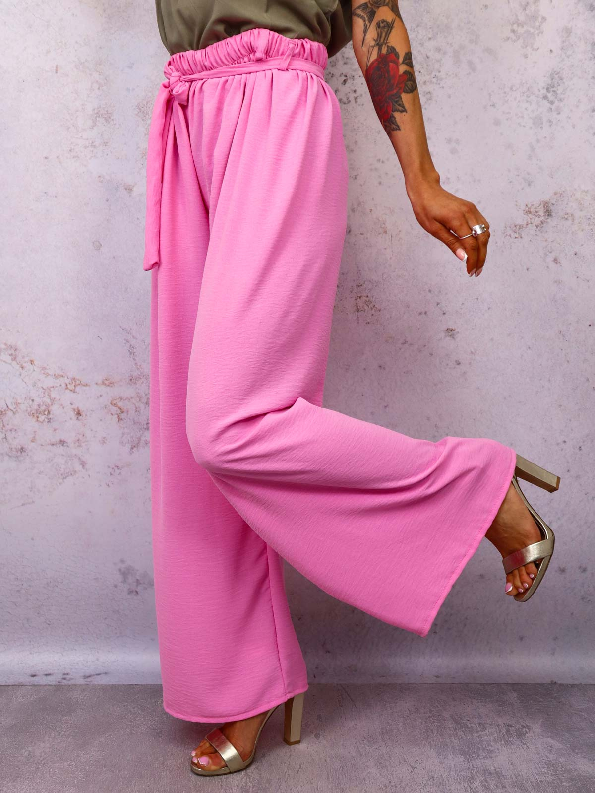 SPODNIE SZEROKIE Z GUMĄ I WIĄZANIEM W PASIE- JASNORÓŻOWE
