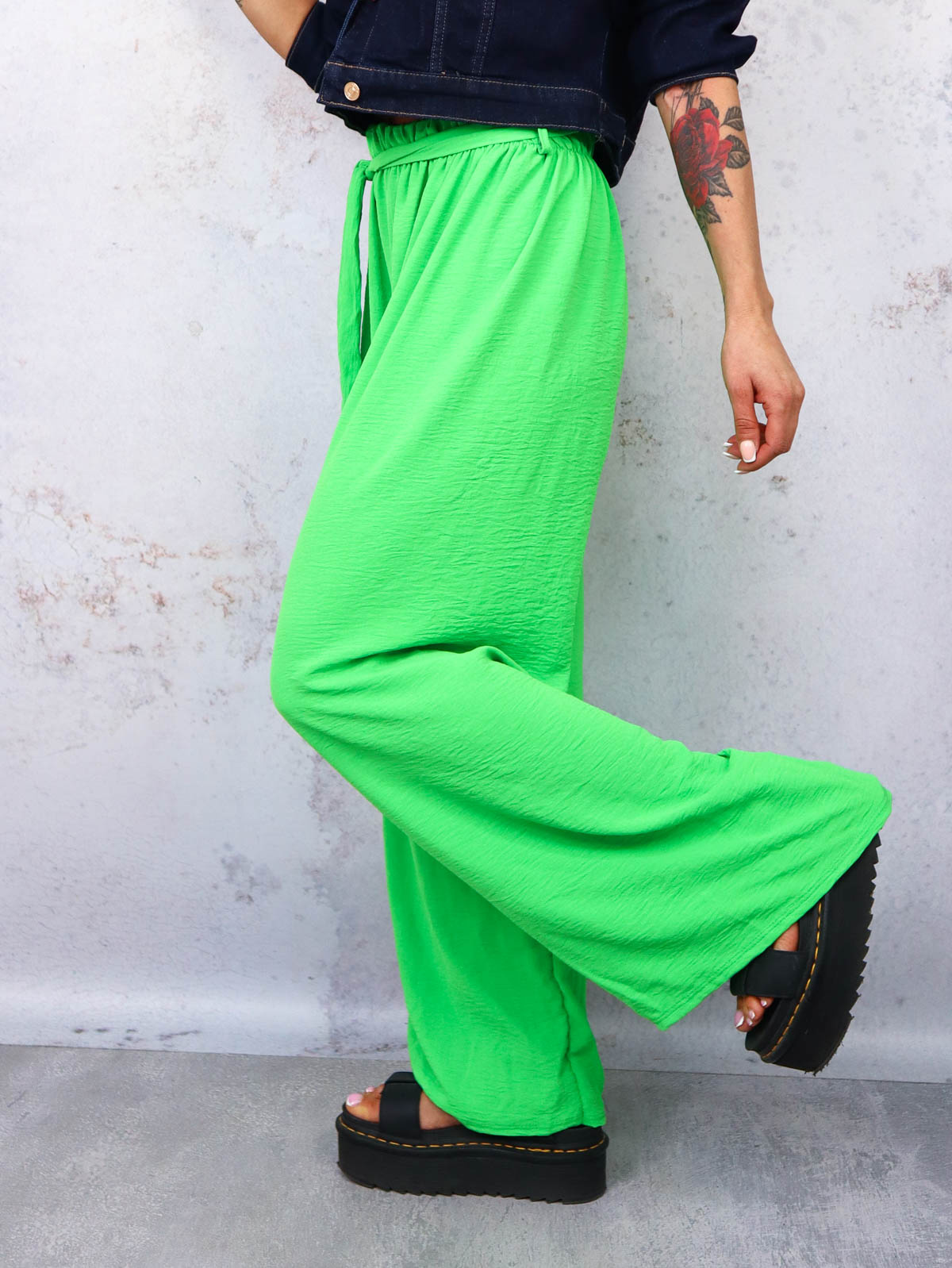 SPODNIE SZEROKIE Z GUMĄ I WIĄZANIEM W PASIE- ZIELONE