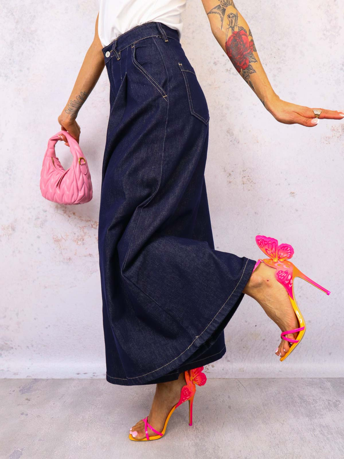 SPODNIE JEANSOWE Z BARDZO SZEROKIMI NOGAWKAMI- CIEMNY JEANS