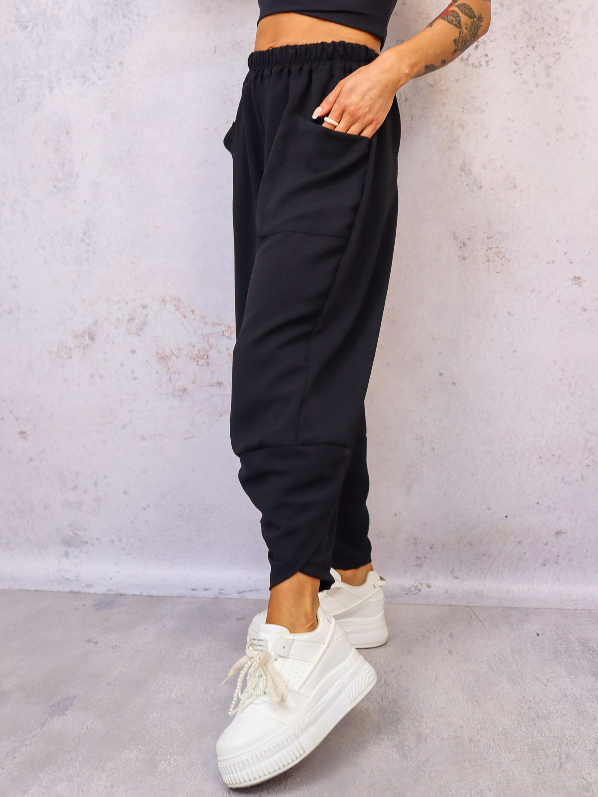 SPODNIE MATERIAŁOWE O LUŹNYM KROJU- CZARNE