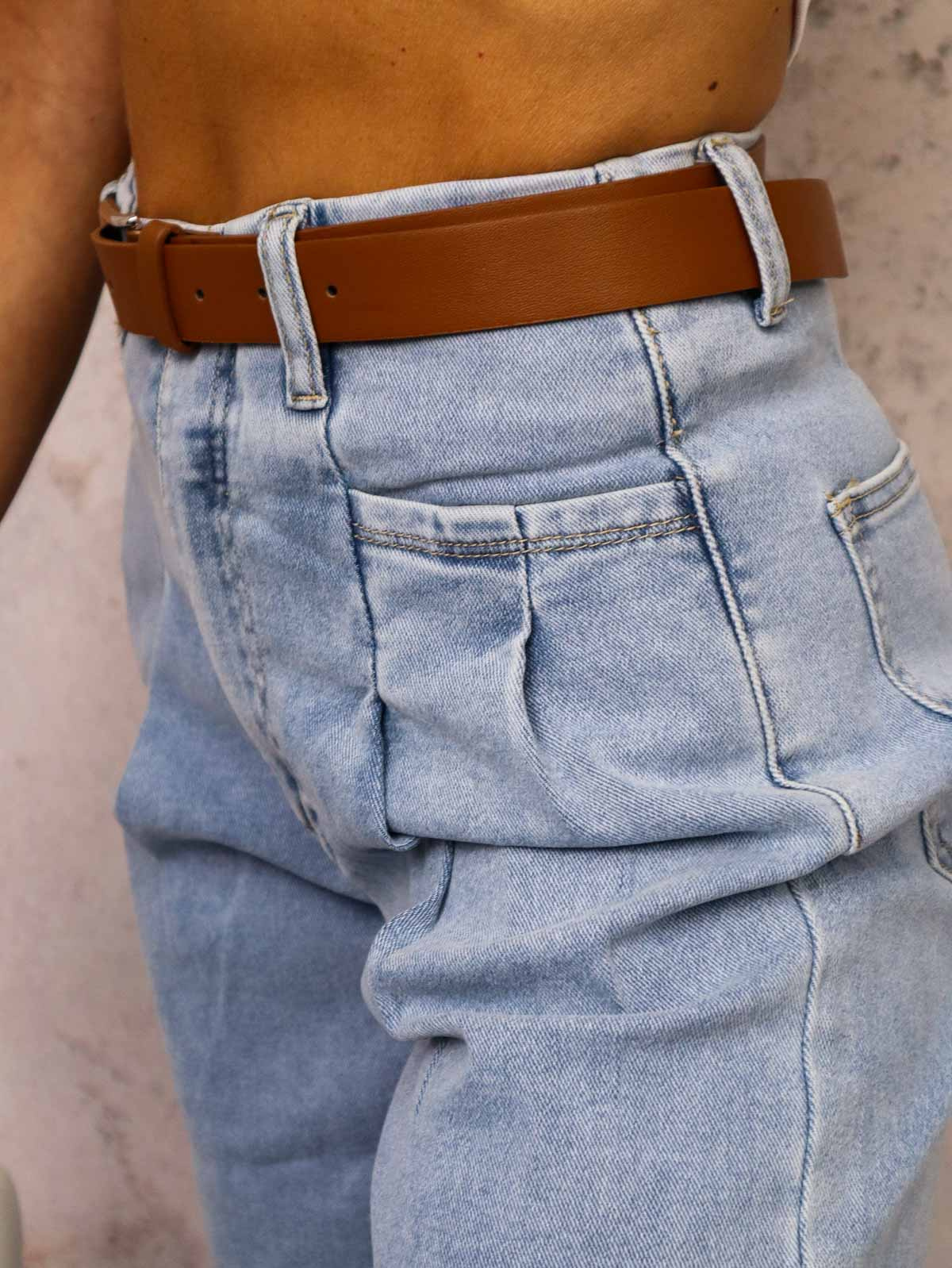 SPODNIE JEANSOWE Z PRZESZYCIAMI PRZY KIESZENIACH+ PASEK