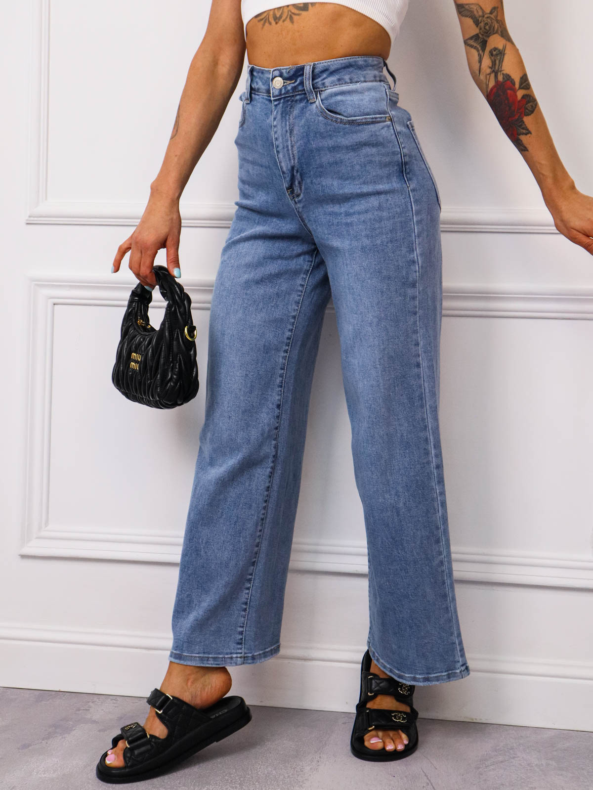 SPODNIE JEANSOWE Z ROZSZERZANYMI NOGAWKAMI I WYSOKIM STANEM