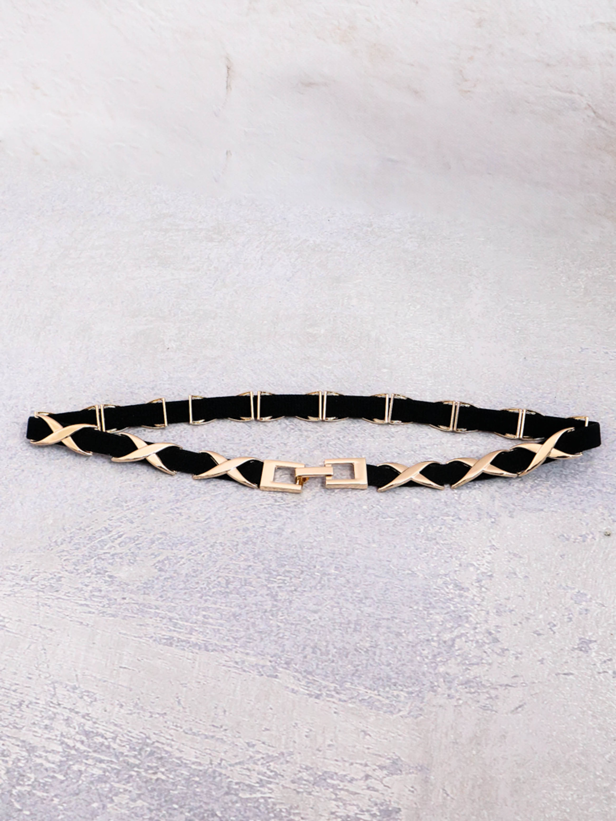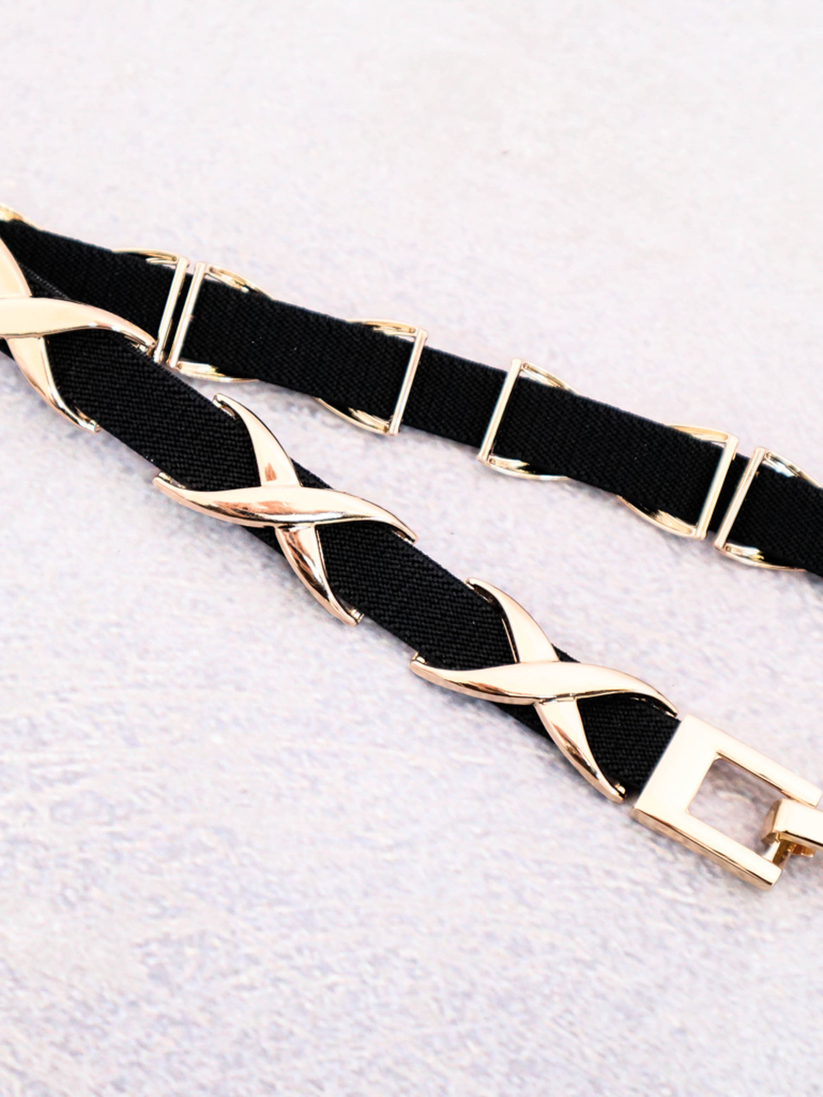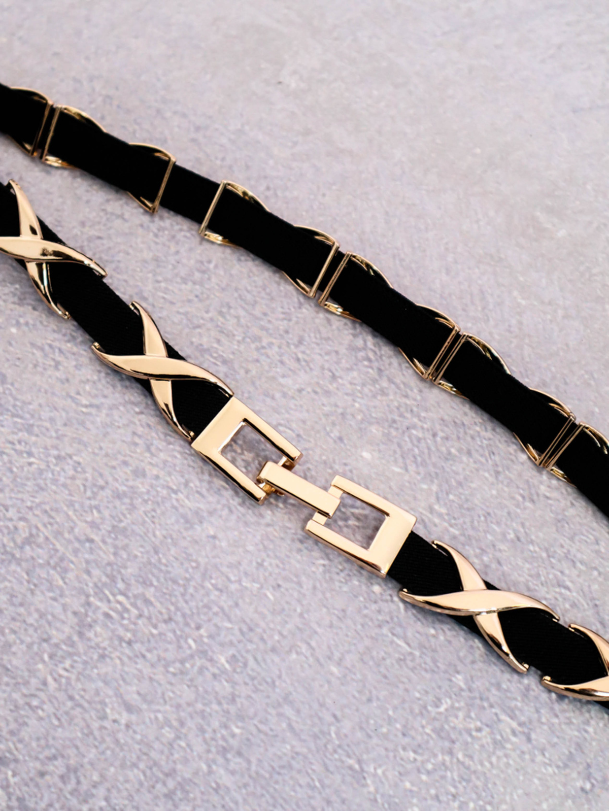 CZARNY PASEK NA GUMIE ZE ZŁOTYMI ELEMENTAMI