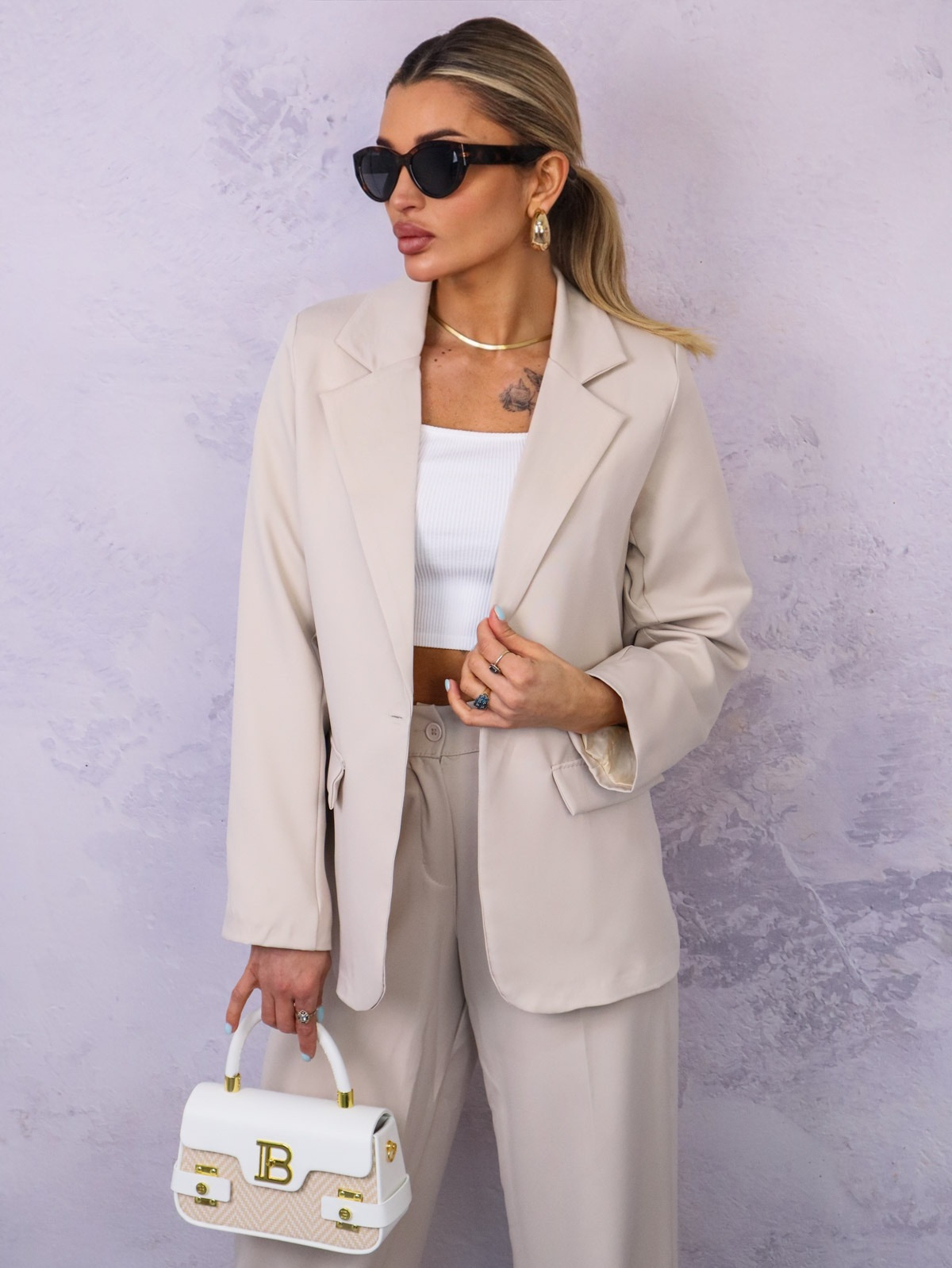 KOMPLET ELEGANCKI MARYNARKA+ SPODNIE- BEŻOWY