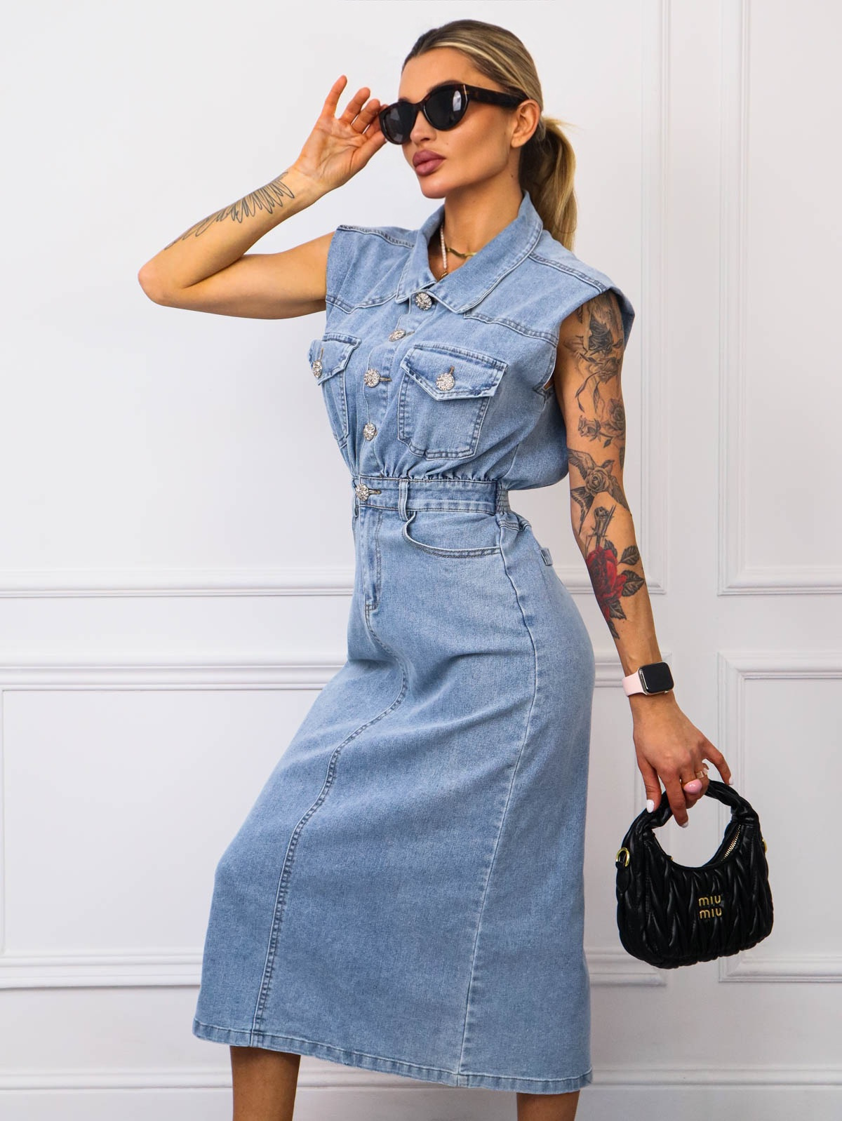 SUKIENKA JEANSOWA MIDI Z KIESZENIAMI