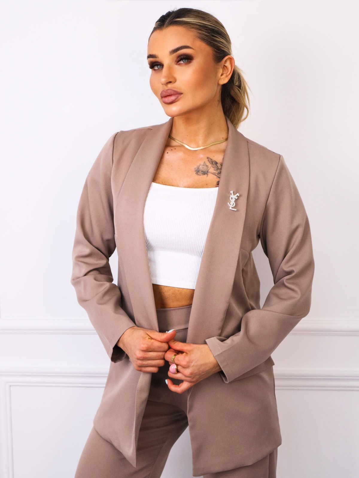 KOMPLET ELEGANCKI MARYNARKA+ SPODNIE- BROSZKA GRATIS- FANGO