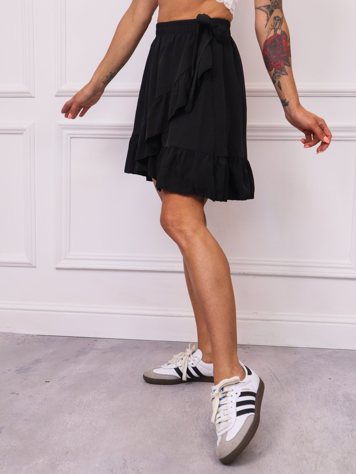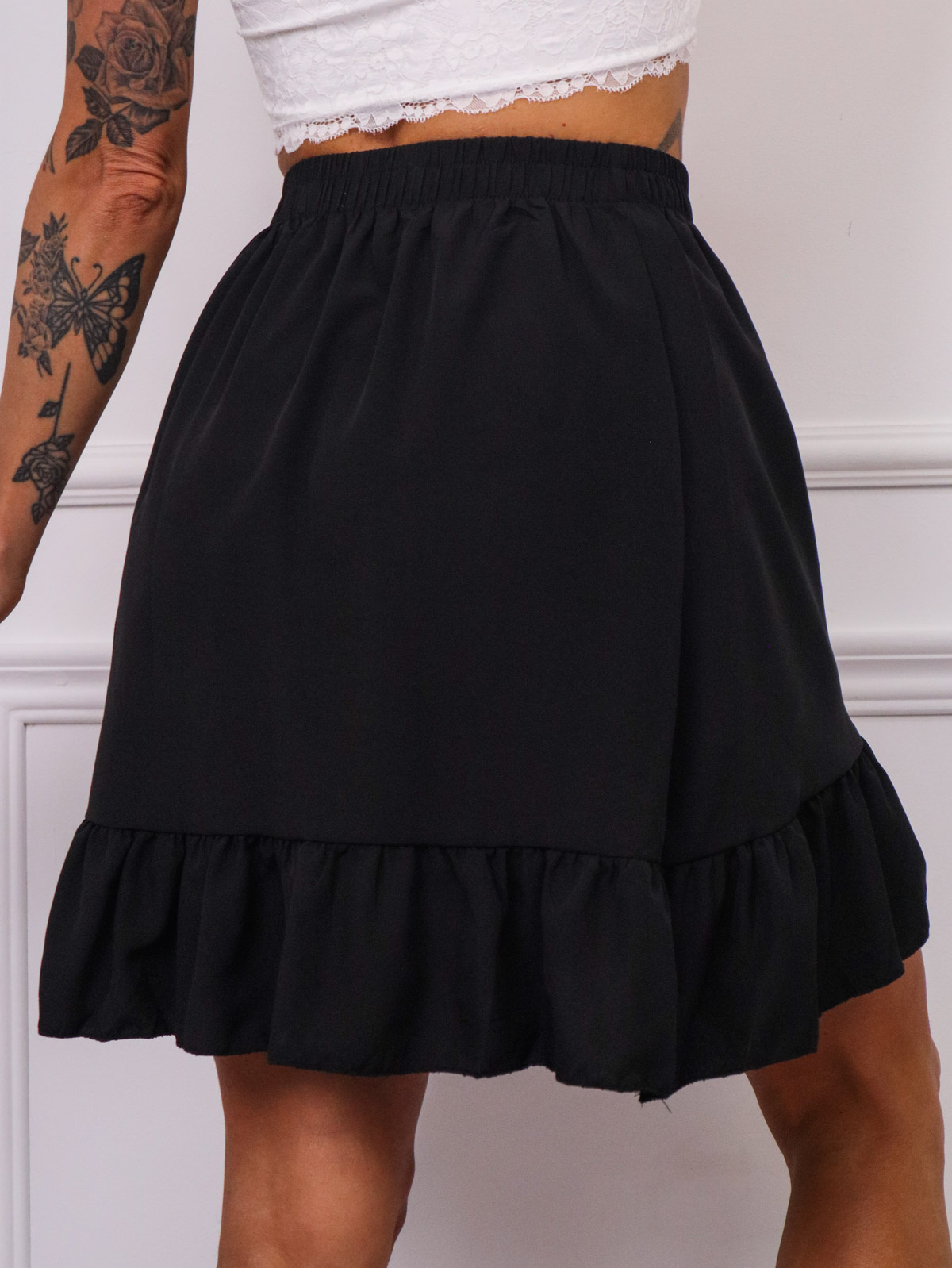 SPÓDNICA Z FALBANAMI WIĄZANA W PASIE- CZARNA