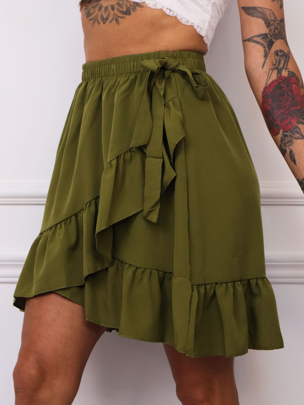 SPÓDNICA Z FALBANAMI WIĄZANA W PASIE- ZIELONA