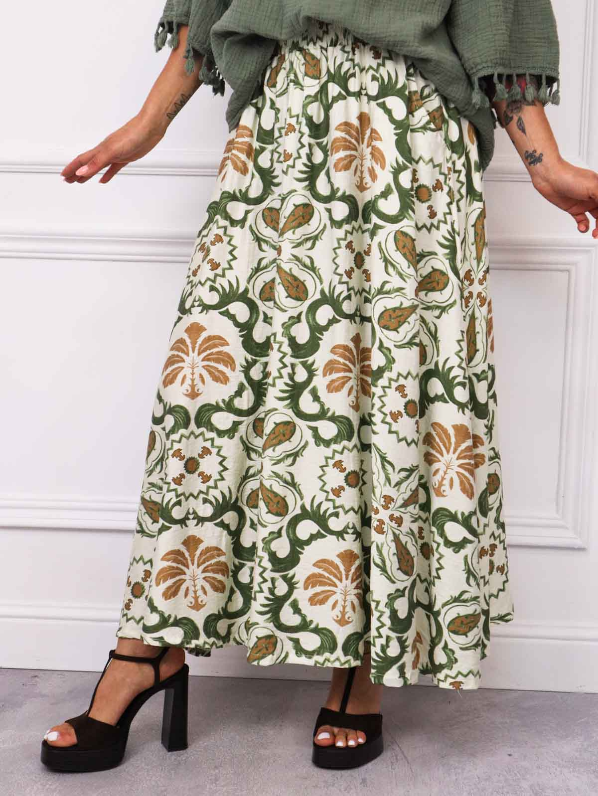 SPÓDNICA MAXI WZORZYSTA Z GUMĄ W PASIE- ZIELONA
