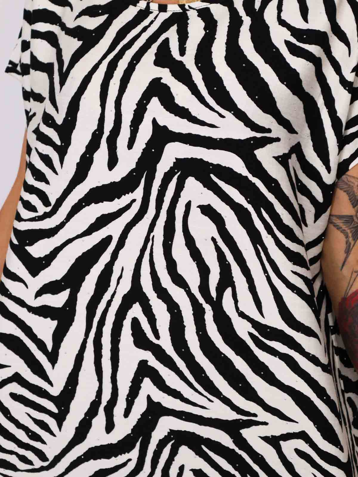 T-SHIRT OVERSIZE W ZEBRĘ Z OZDOBNYMI CYRKONIAMI- CZARNY