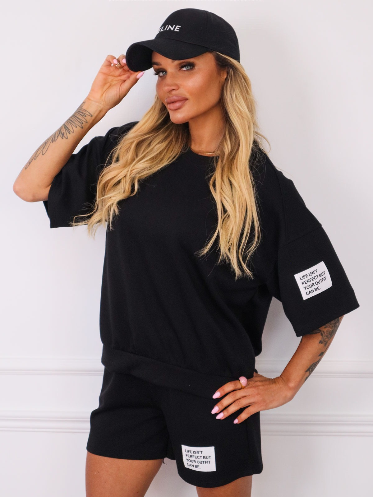 KOMPLET SZORTY+ T-SHIRT Z NASZYWKĄ- CZARNY