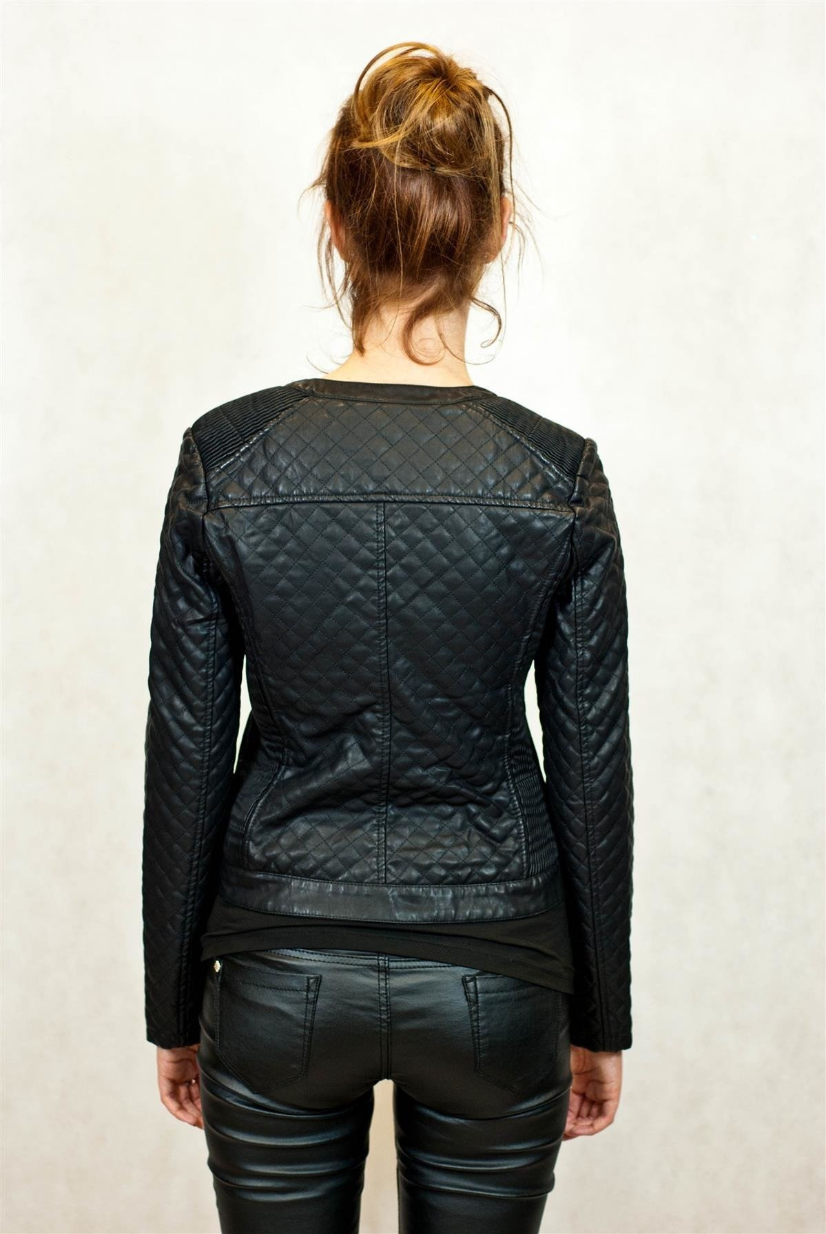 Pikowana kurtka ze skóry ekologicznej, zapinana na zamek. Z przodu trzy kieszenie z ozdobnymi zamkami. Idealna do wielu codziennych stylizacji.