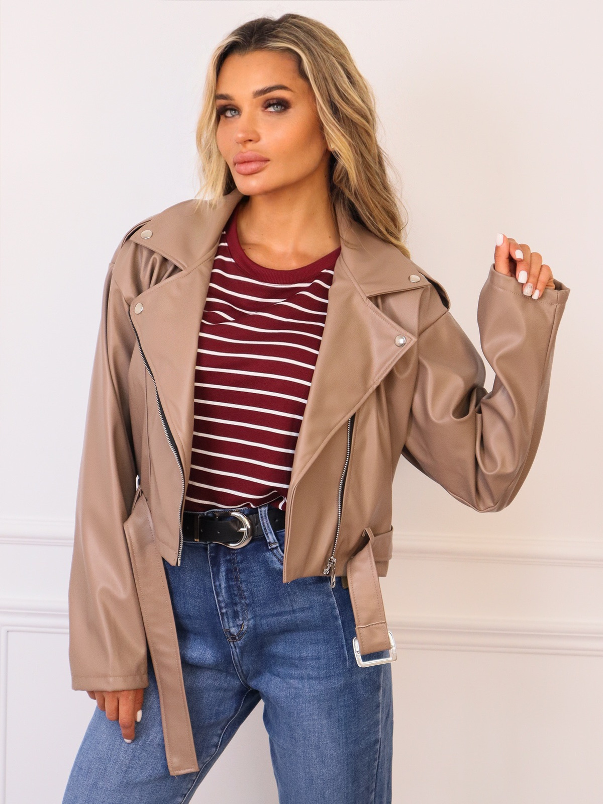 KURTKA RAMONESKA Z PASKIEM- BRĄZOWA