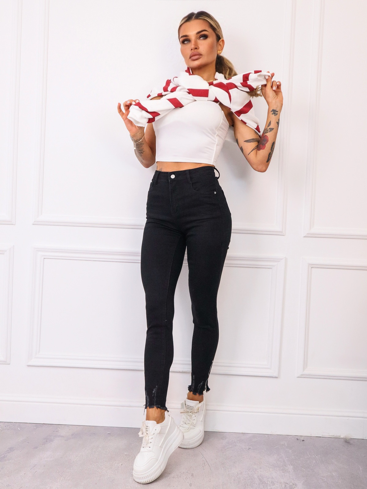 CZARNE SPODNIE Z PRZETARCIAMI I ZAMKAMI NA DOLE NOGAWEK