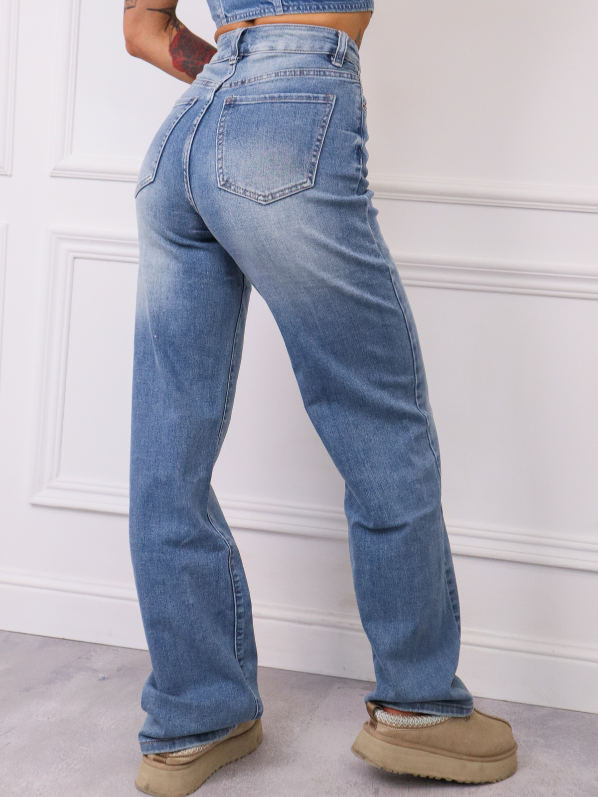 SPODNIE JEANSOWE Z WYSOKIM STANEM I SZEROKIMI NOGAWKAMI