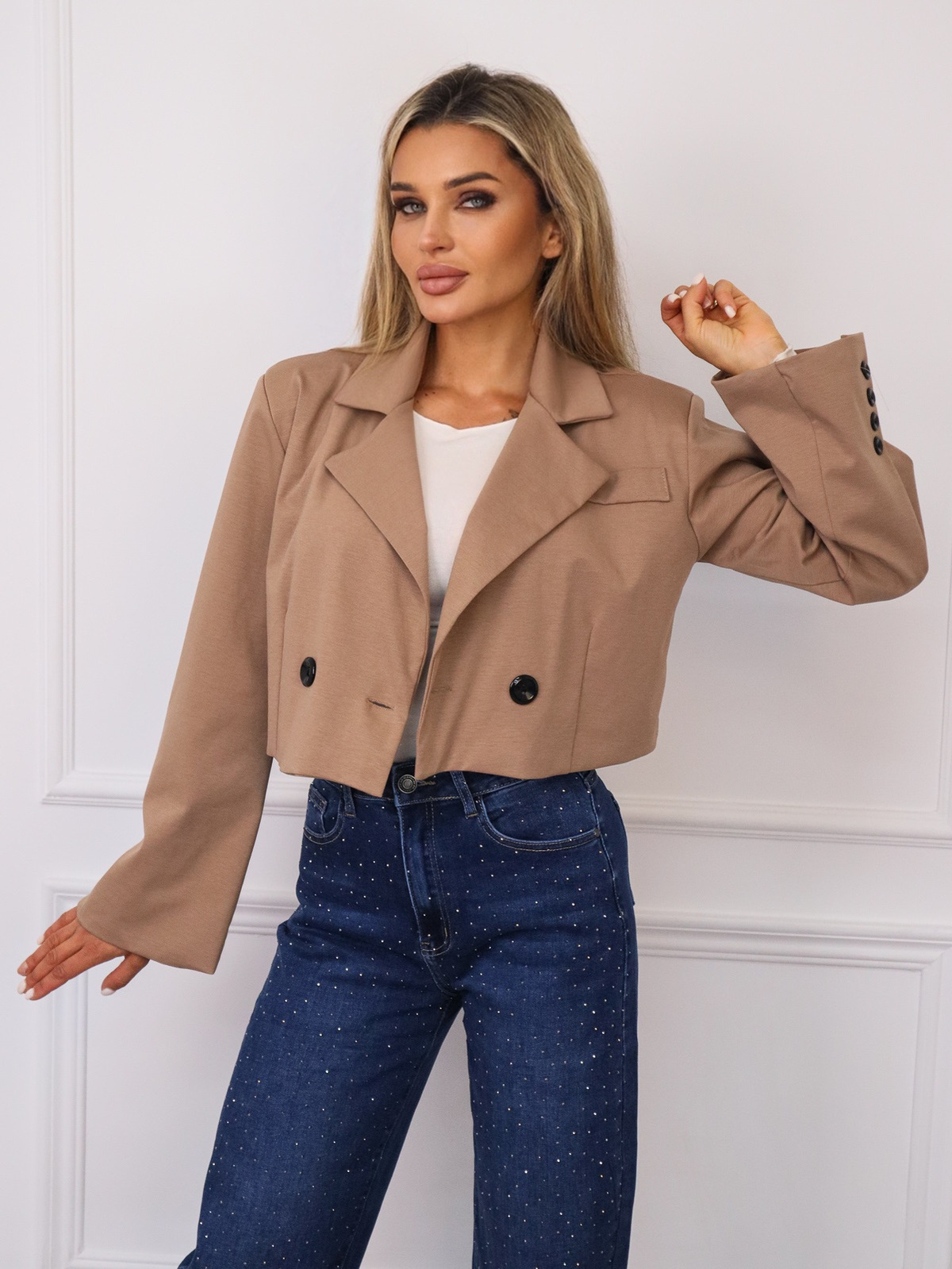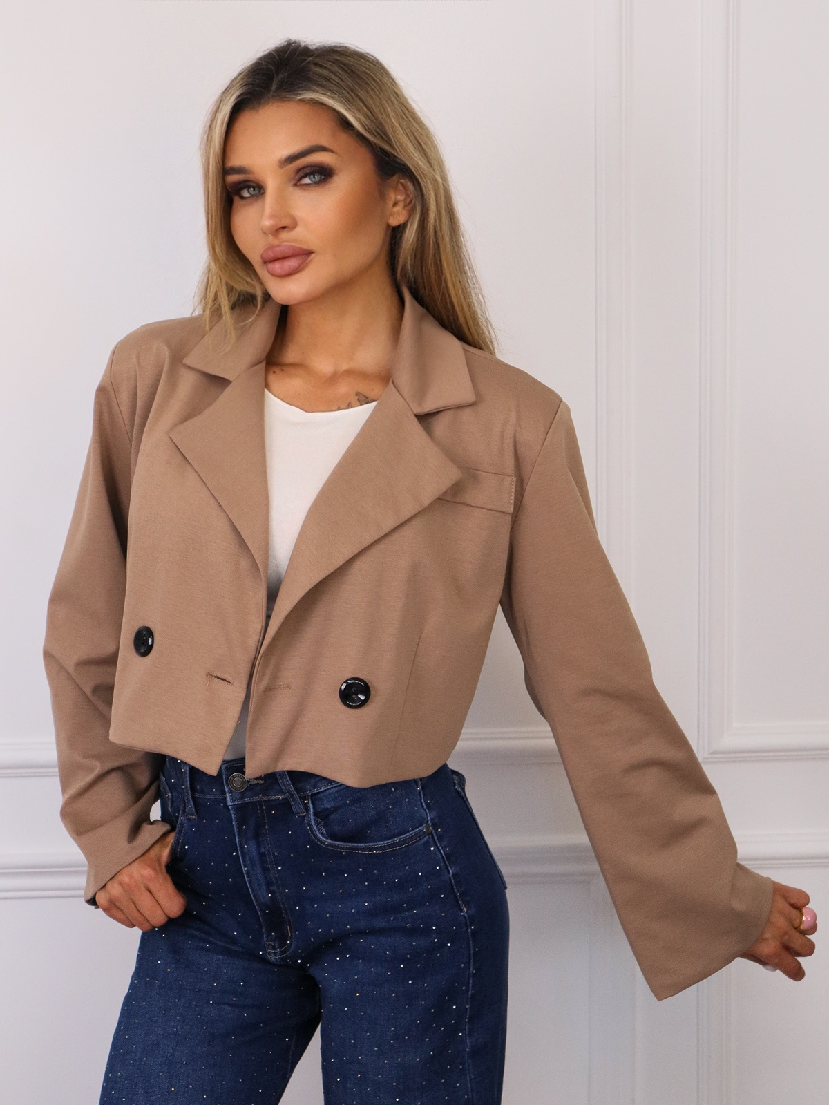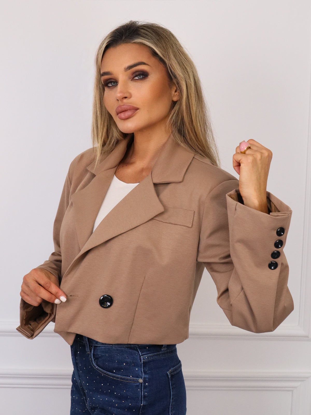 KRÓTKA MARYNARKA ZAPINANA NA GUZIKI- BRĄZOWA