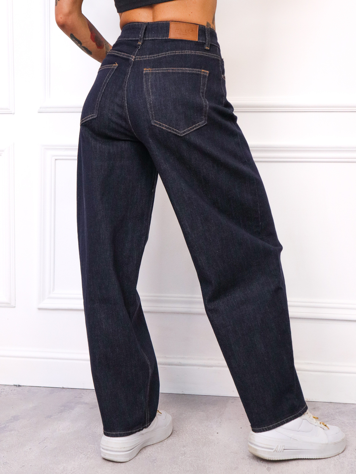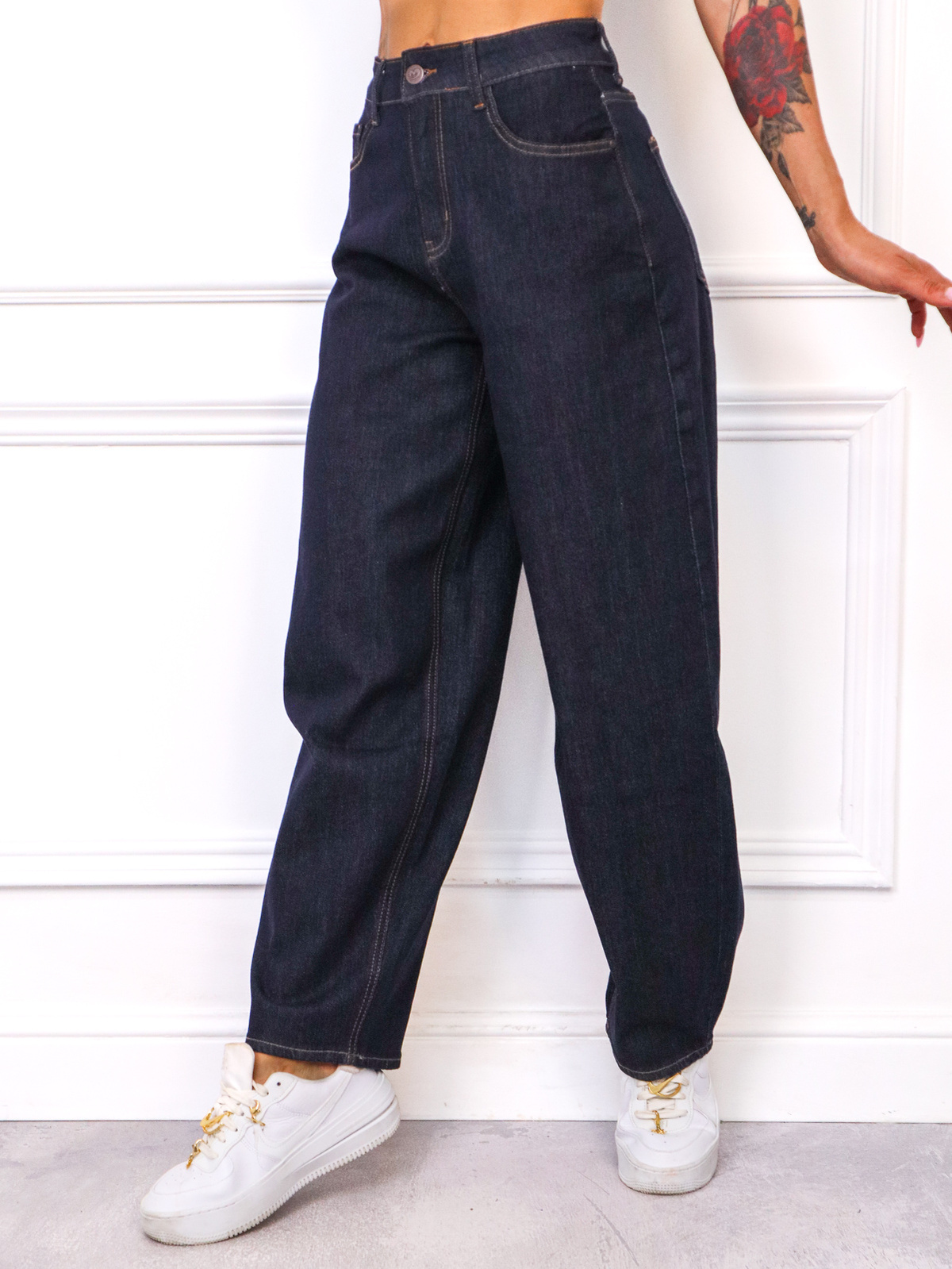 SPODNIE JENSOWE LOOSE Z WYSOKIM STANEM- CIEMNY GRANAT