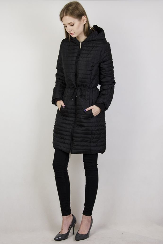 Czarna przedłużana kurtka pikowana