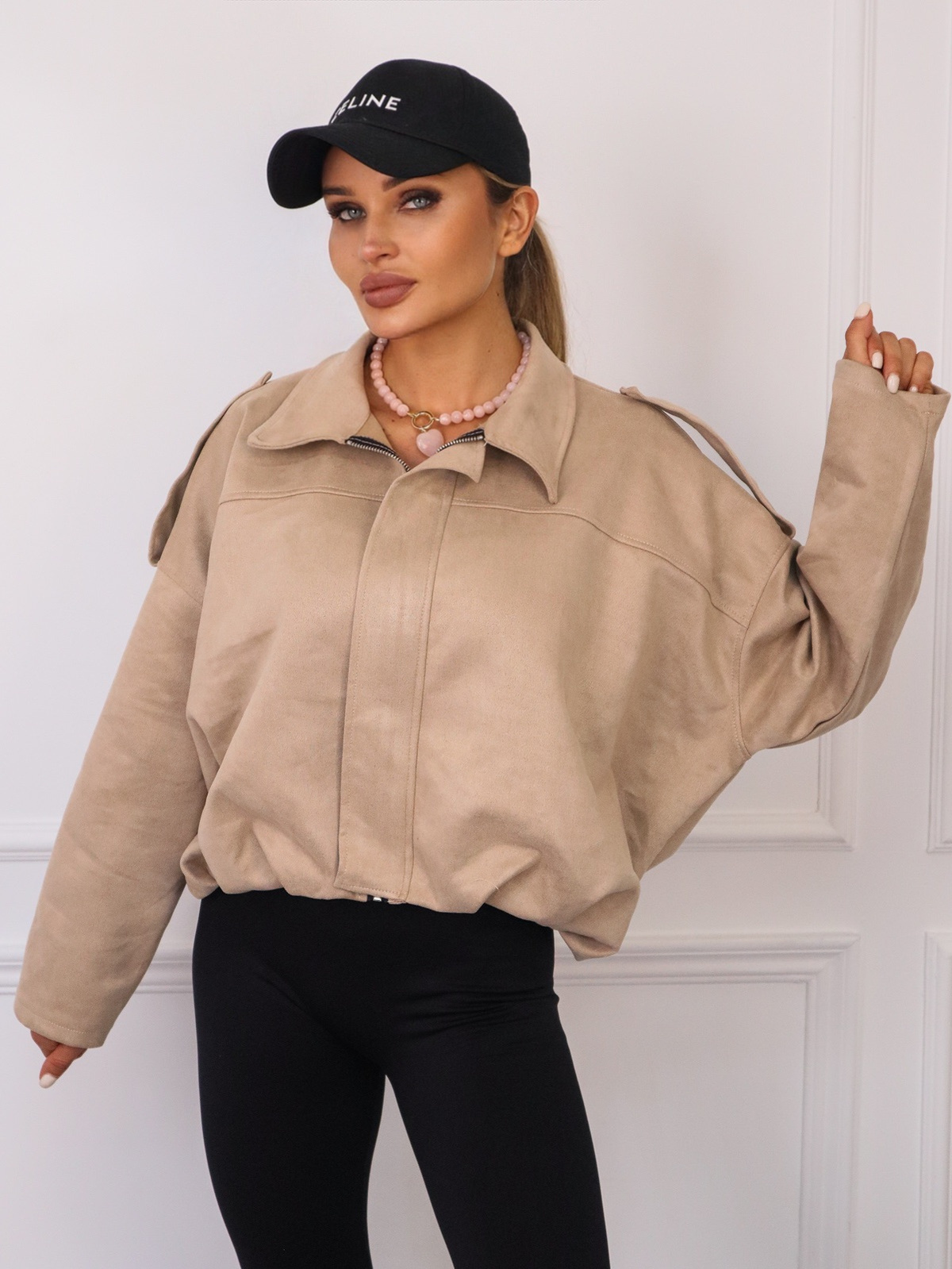 KURTKA OVERSIZE Z IMITACJI ZAMSZU ZAPINANA NA ZAMEK- BEŻOWA