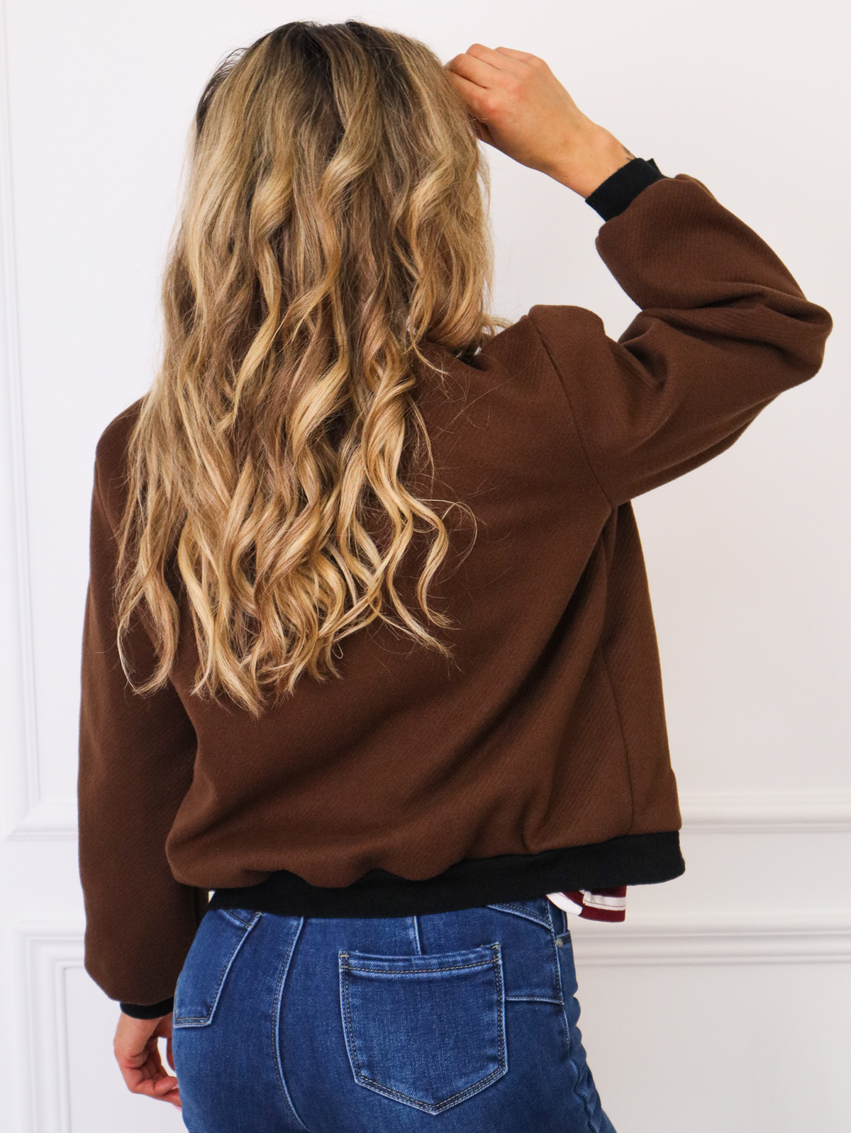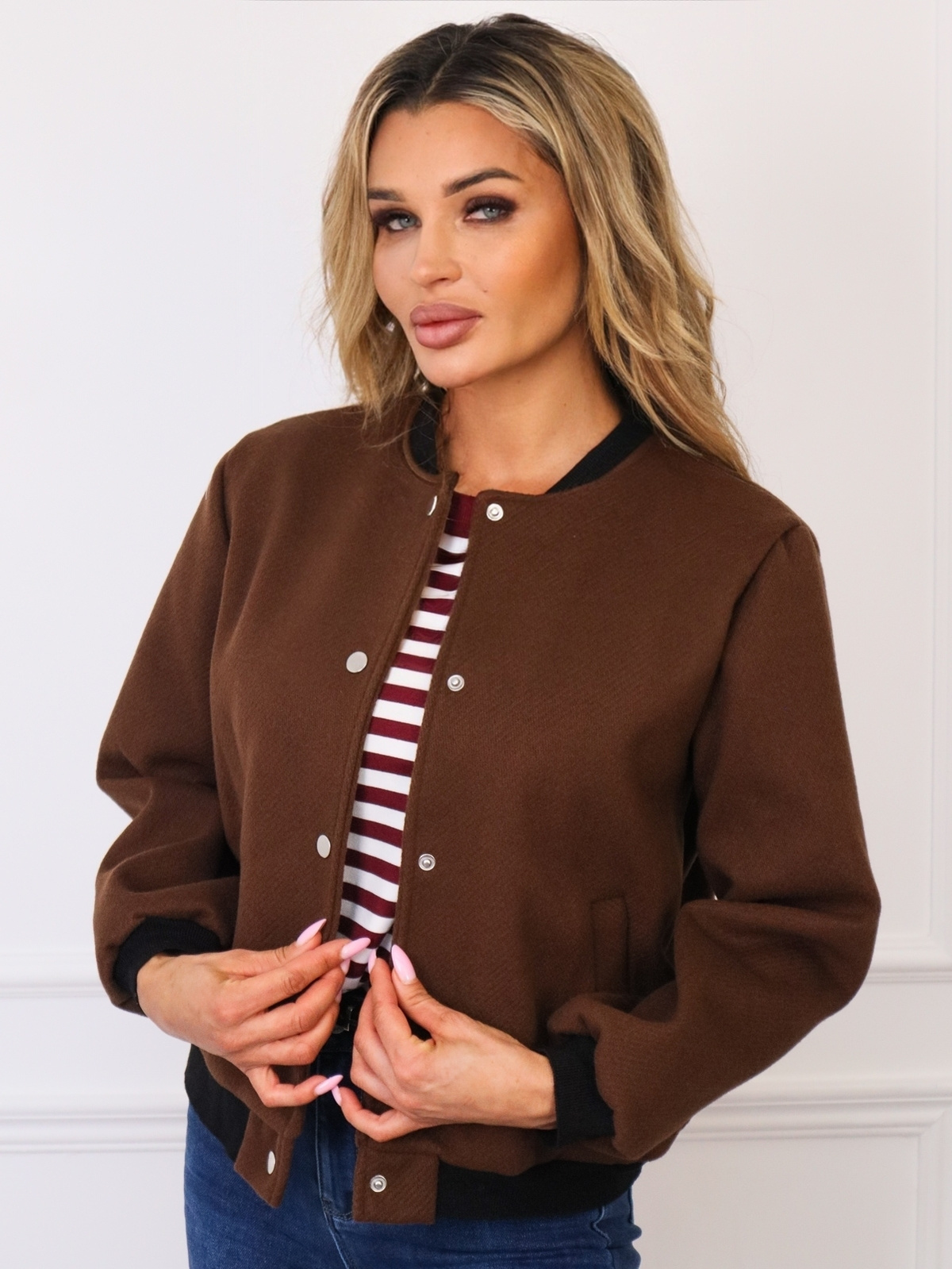KURTKA BOMBERKA ZAPINANA NA ZATRZASKI- BRĄZOWA