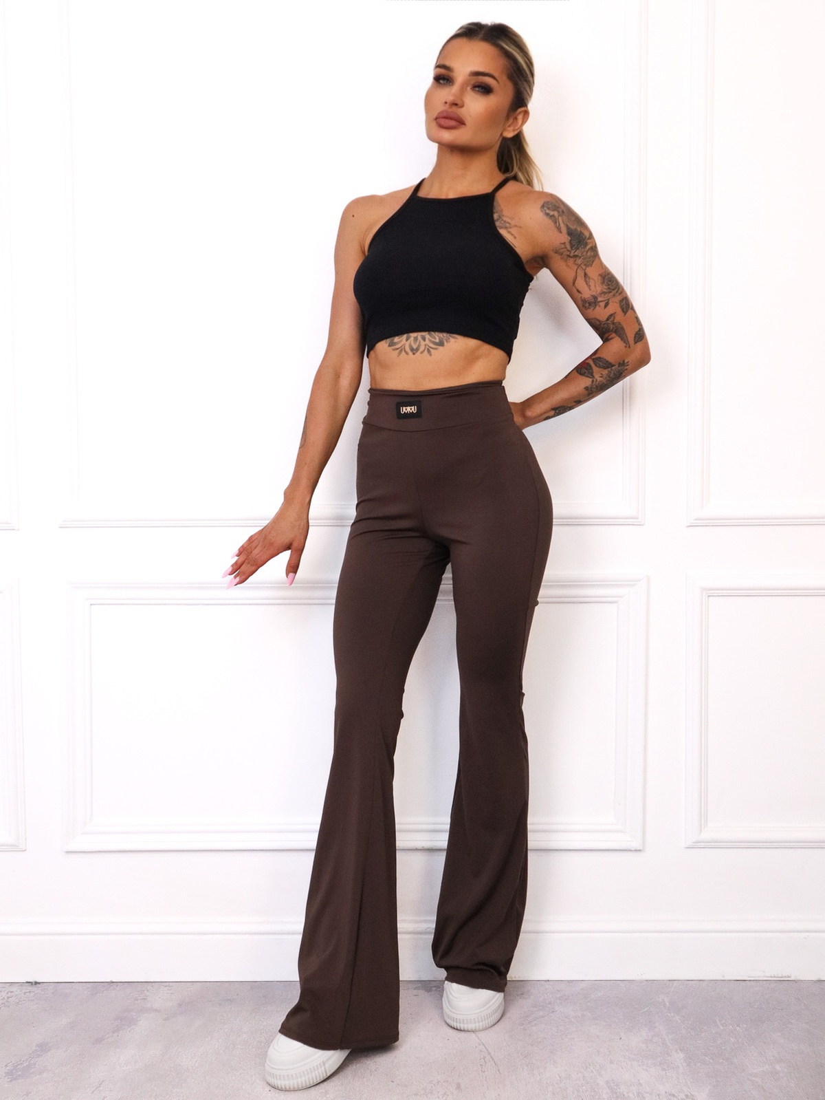 LEGGINSY FLARE Z ROZSZERZANYMI NOGAWKAMI I NASZYWKĄ- BRĄZOWE