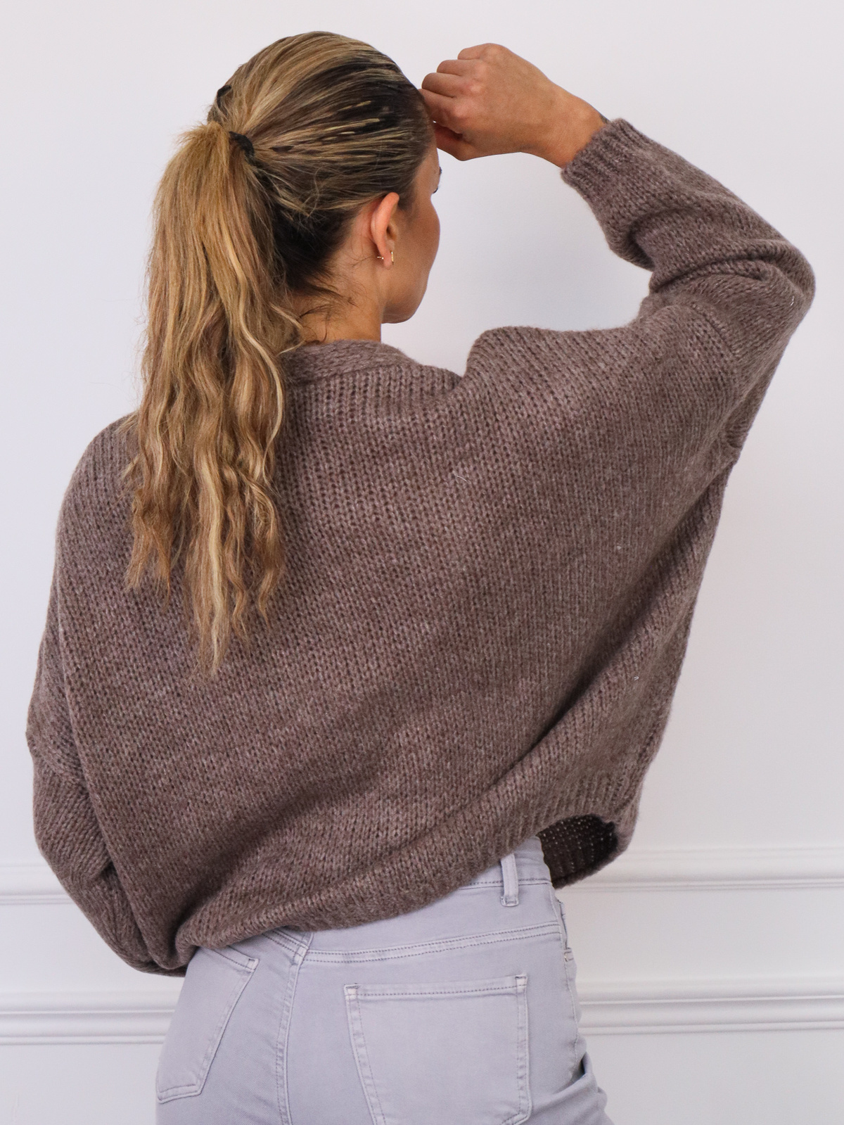 LUŹNY SWETER ZE ZŁOTYMI GUZIKAMI- FANGO