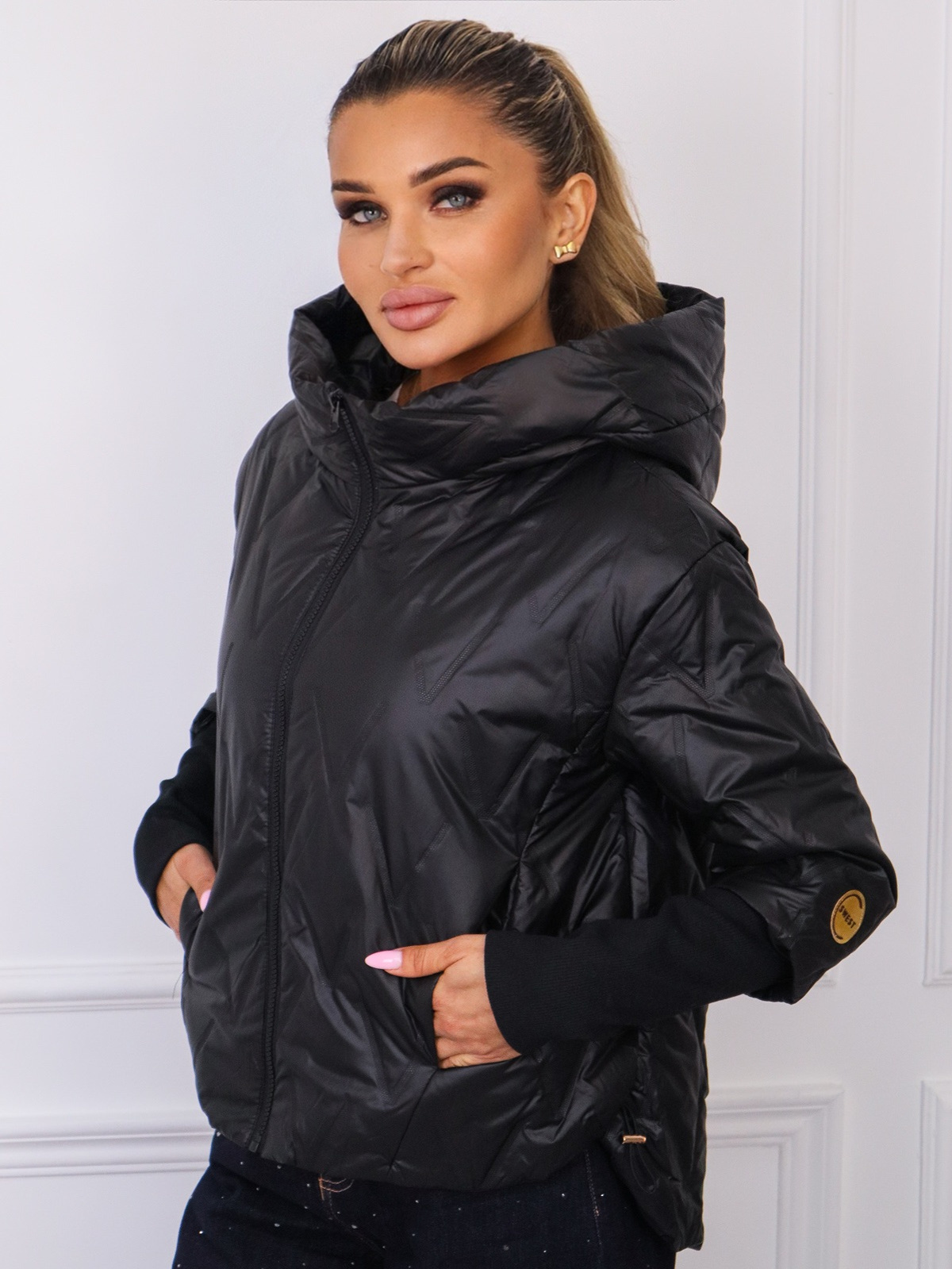 ASYMETRYCZNA KURTKA PIKOWANA ZE ŚCIAGACZAMI NA RĘKAWACH- CZARNA