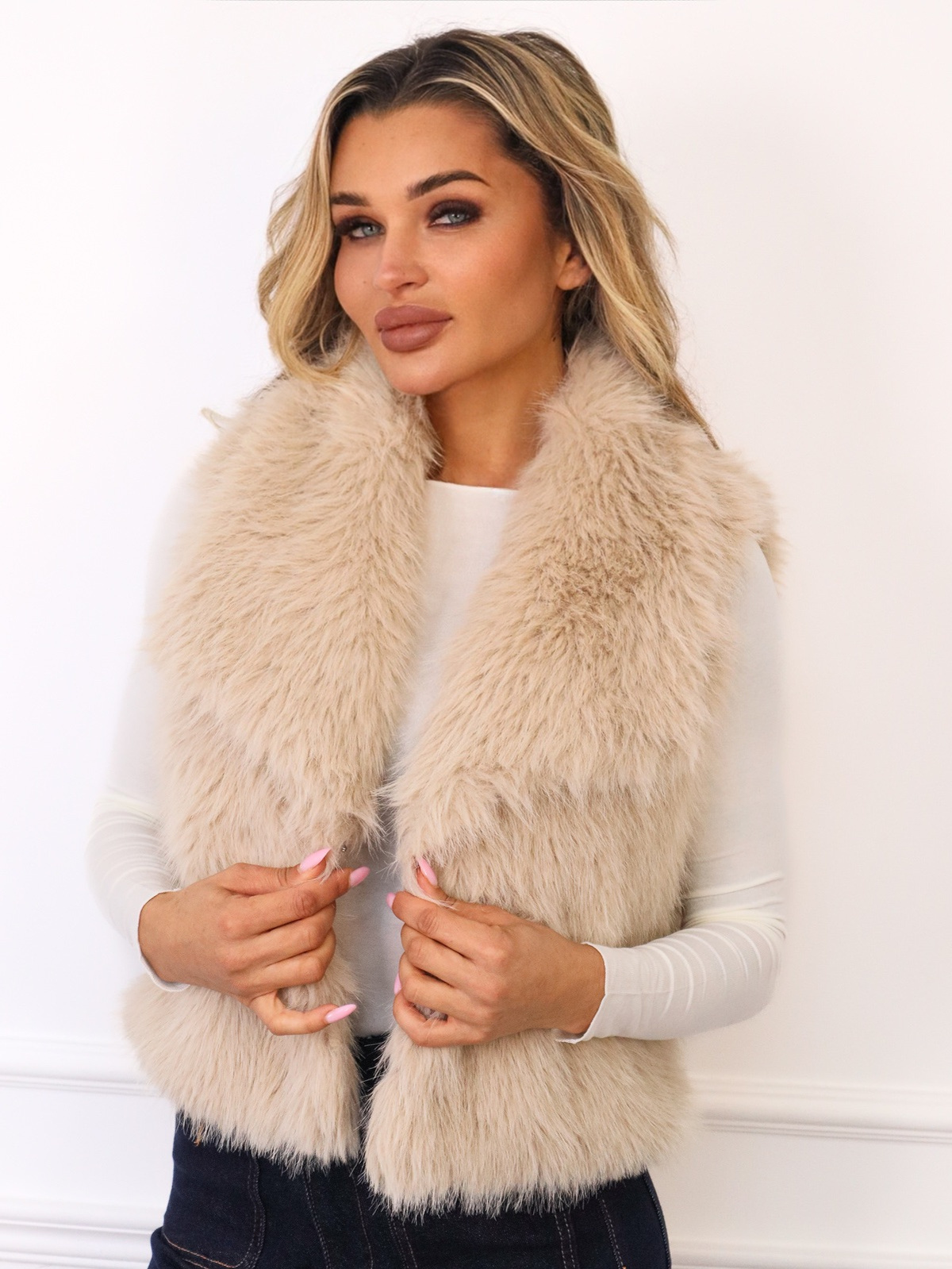 KAMIZELKA FUTRZANA ZAPINANA NA HAFTKI- BEŻOWA